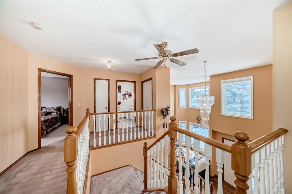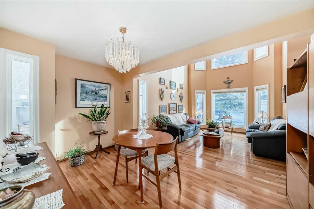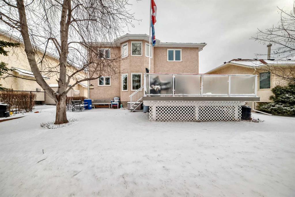 Welcome to this fantastic house. Located at exclusive Nirvana Point Estate, in the mature neighbourhood of Hawkwood, NW Calgary. This 2-storey home featured New Windows and a partially developed basement. Embracing an expansive open concept, it offers a generous living space of over 2,195 square feet. Upon entering the main floor, you'll be greeted by a spacious living room featuring bay windows that allow abundant sunlight to fill the space. The open kitchen is equipped with cabinet, stainless steel appliances, a pantry, and an eating nook that provides access to a lovely surrounding deck. The spacious family room is adorned with an inviting fireplace that adds a cozy ambiance to the space. Additionally, the main level offers a formal dining room, creating an ideal environment for hosting guests. The separate laundry room and 2-piece bathroom add functionality and convenience to this level. As you ascend to the second storey, you will discover a generously sized master bedroom, with big windows, a walk-in closet and a 4-piece ensuite. And two well-appointed bedrooms, with a 4-piece bathroom. The partially developed basement enhances the overall living space and includes an entertainment area, an extra unfinished bedroom and a 2-piece bathroom. The beautiful backyard is an ideal space for gathering with family and friends. This property enjoys an excellent location, close to all major amenities, shopping, schools, parks, public transportation, and more. Book your private showing today!