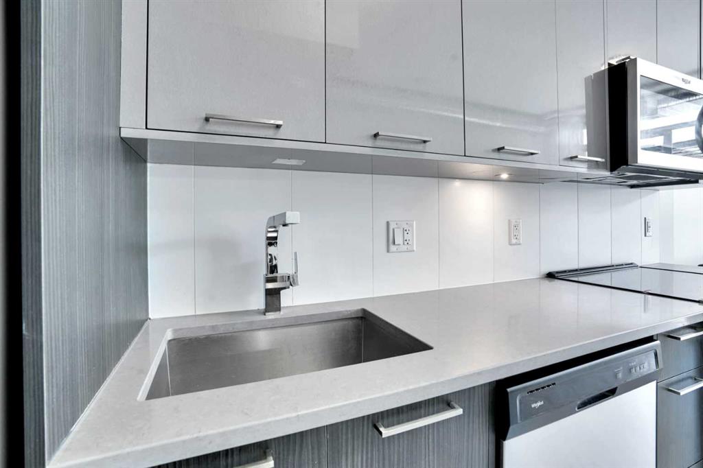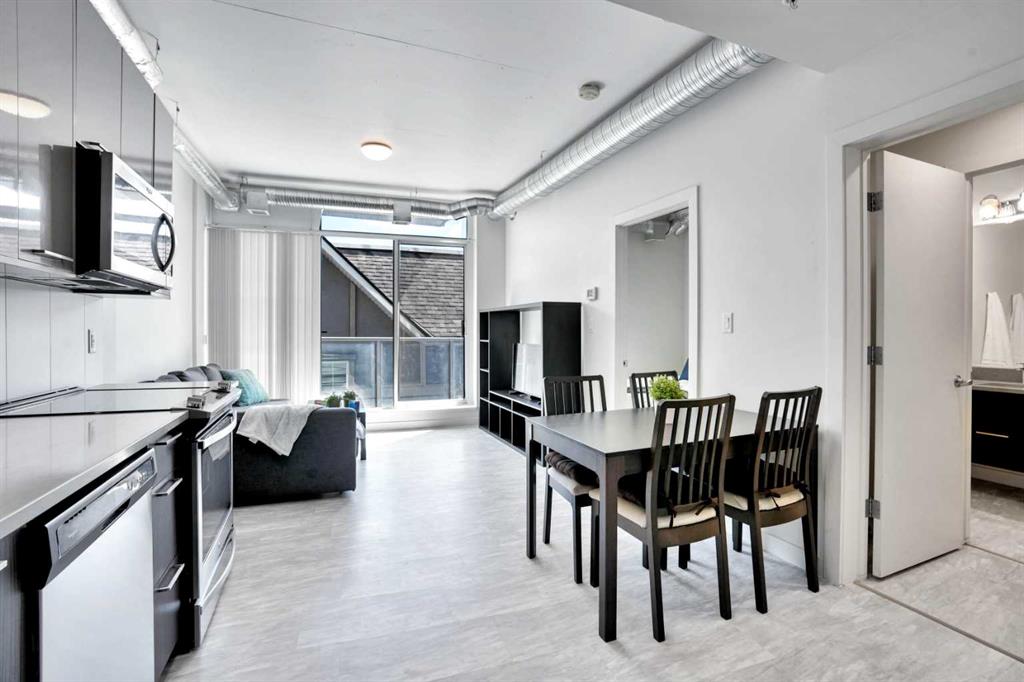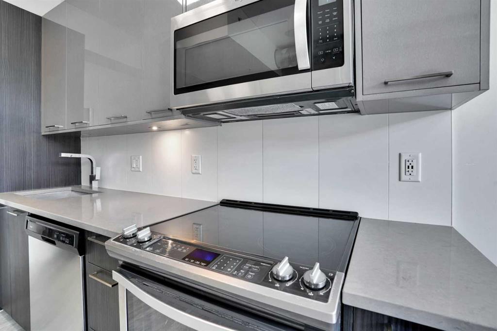 Ever dreamed of living just minutes away from the downtown, in a 1 bedroom (not studio) apartment, in trendy East Village, with the civic heart of the city, City Hall, only 1500 sq ft away, and the Bow River under 1000 ft, and be witness to the transformation of the Stampede grounds into Calgary's foremost entertainment district? Welcome HOME. The INK has been crafted to offer amazing experiences. The kitchen, the heart of any home, will be host to your culinary creations and features quartz kitchen countertops, undermount sink, stainless steel appliances, space-saving over-the-range microwave, easy-to-clean glass top oven. The kitchen / dining and living room all form 1 larger open living space, perfect for either individuals, couples, entertaining or an AirBnb. You'll appreciate the insuite laundry (stacked) and the 4 piece ensuite. The generous balcony allows you to relax outside after a long day, or go up to the rooftop patio. Calgary has an extensive bike network that INK was designed to utilize, including bike storage and bike maintenance. In the same room, there is a pet grooming station. Low condo fees help ensure the affordability. Evenings and weekends, your entertainment options are unlimited with Cowboys Casino and the Stampede grounds on your doorstep. This condo could make an amazing long or shorter term (believe 31 day min) and we can include bed, table, couch, and TV to make it easy. Between the affordable price, the amazing location for both work and play, rental potential, the full laundry, there is LOT to impress. Call today for your private viewing.