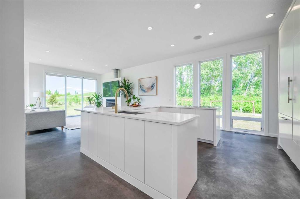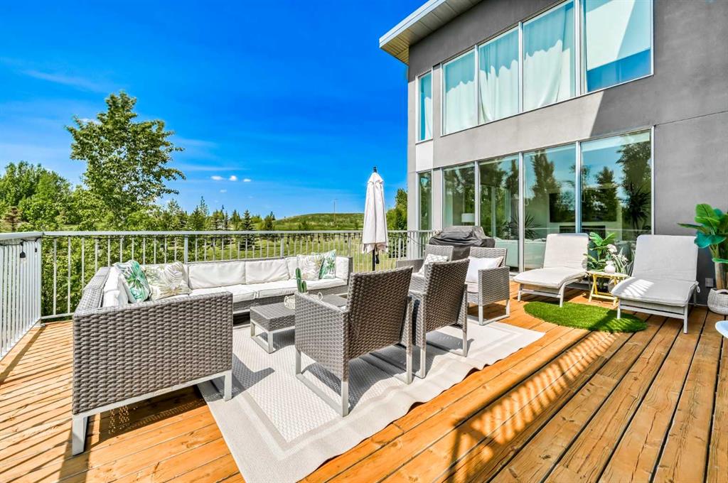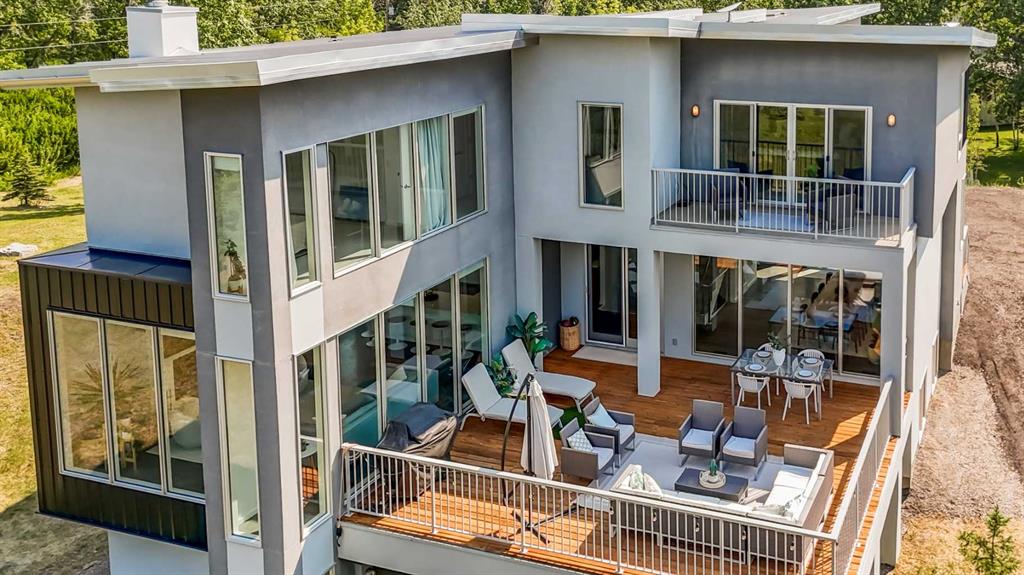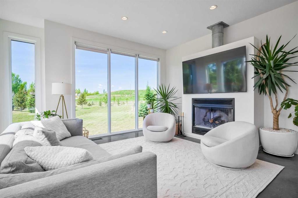 Welcome to this beautifully designed multigenerational home, offering flexible living spaces ideal for extended family, nanny or a fantastic mortgage helper opportunity. This is an extraordinary custom-built estate nestled on a beautifully manicured 2-acre parcel, including a high-earning legal suite, just a short drive from the vibrant heart of Calgary. This exceptional 8-bedroom, 4.5-bathroom residence offers 4,941 square feet of exquisitely designed living space, crafted with a seamless blend of architectural sophistication and everyday comfort. From the moment you arrive, you're greeted by the striking contemporary design—featuring clean lines, a sleek metal roof, and purposeful elements that make this home as stylish as it is functional. Expansive floor-to-ceiling windows invite an abundance of natural light throughout, illuminating polished concrete floors and emphasizing the spacious, open-concept layout. The main dining area flows effortlessly from the state-of-the-art kitchen—complete with high-end appliances, extensive quartz countertops, custom cabinetry, and a large center island—into a generous living room with a real wood-burning fireplace, perfect for cozy gatherings and enjoying panoramic views. A dedicated den offers a quiet space for a home office or study. Each of the six well-proportioned bedrooms provides a private sanctuary, with the luxurious primary suite featuring a spa-inspired ensuite with dual vanities, a walk-in shower, makeup vanity, and open-concept closet. The remaining bathrooms are outfitted with sleek, contemporary fixtures that reflect the home's modern character. Downstairs, the fully developed walk-out basement opens up a world of possibility, with a home theater, gym, and recreation room ready to suit any lifestyle. Adding incredible value is the thoughtfully designed 2-bedroom legal suite above the triple-attached garage, with a private entrance and full kitchen—currently generating $2,100 per month in consistent rental income, making it ideal for investors, multigenerational living, or offsetting mortgage costs. The expansive lot includes mature landscaping, a 3,500-gallon cistern, a large deck for entertaining, and wide open spaces perfect for gardening or play—all set against sweeping prairie views. Lovingly maintained by the original owner and built with premium materials throughout, this home combines modern luxury with practical functionality. Despite its peaceful rural setting, the property is just minutes from Calgary’s city limits, the South Health Campus, top-rated schools, shopping, restaurants, and all essential services. Whether you're searching for a luxurious family retreat, a flexible multigenerational setup, or a savvy investment opportunity, this extraordinary estate offers unmatched versatility and timeless appeal. This property is a must see in person to truly take it all in. Ask your favorite realtor and come on Buy!