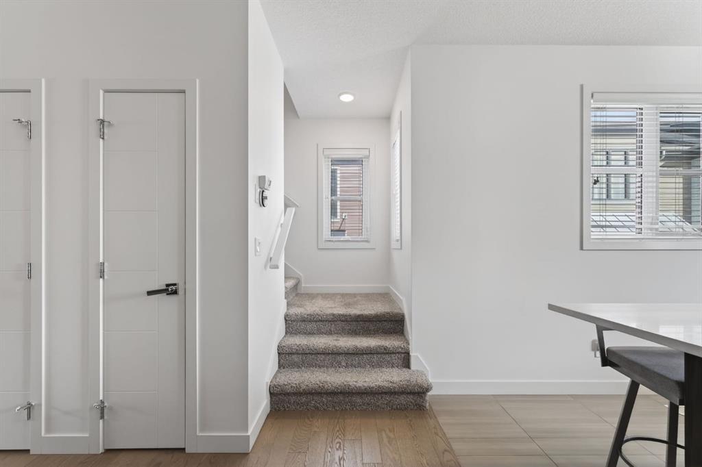 Welcome to this stylish and well-maintained 3-bedroom, 2.5-bathroom townhouse located in the vibrant community of Walden. Built in 2015 and thoughtfully designed for modern living, this inner-loop end unit offers added privacy while facing a quiet green space, creating a peaceful setting just steps from everyday conveniences. The bright and open main level features a contemporary layout perfect for both daily living and entertaining. Large windows allow natural light to fill the living room, while the modern kitchen showcases sleek cabinetry, quartz countertops, stainless steel appliances including a gas range, and ample counter space for cooking and gathering. The dining area flows seamlessly to the private balcony, creating a great space to enjoy morning coffee or relax in the evening. Upstairs, the home offers three comfortable bedrooms, including a spacious primary retreat complete with its own private ensuite bathroom. Two additional bedrooms and a full bathroom provide flexibility for family, guests, or a home office. The lower level provides access to the double tandem attached garage, offering secure parking and excellent storage, along with the added convenience of an additional outdoor parking stall. You will enjoy the a/c on those hot summer days that are just around the corner. One of the standout features of this home is its exceptional location. Residents will appreciate being just a short walk to the Township shopping area, with restaurants, groceries, cafés, and everyday amenities nearby. Outdoor enthusiasts will love the nearby parks, pathways, and green spaces, perfect for walking, biking, or enjoying the outdoors. Commuting is also easy with convenient access in and out of the community and quick connections to major routes. Offering modern design, functional living space, and a fantastic location, this home is an excellent opportunity to enjoy comfortable townhouse living in one of Calgary’s sought-after south communities.