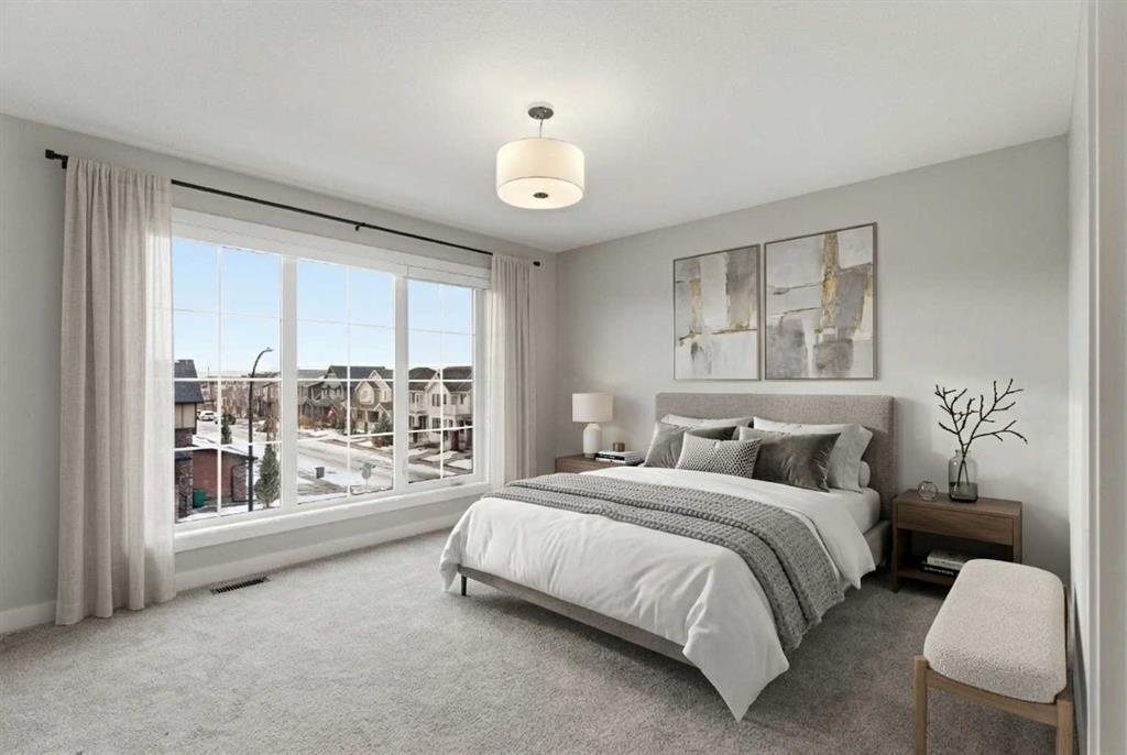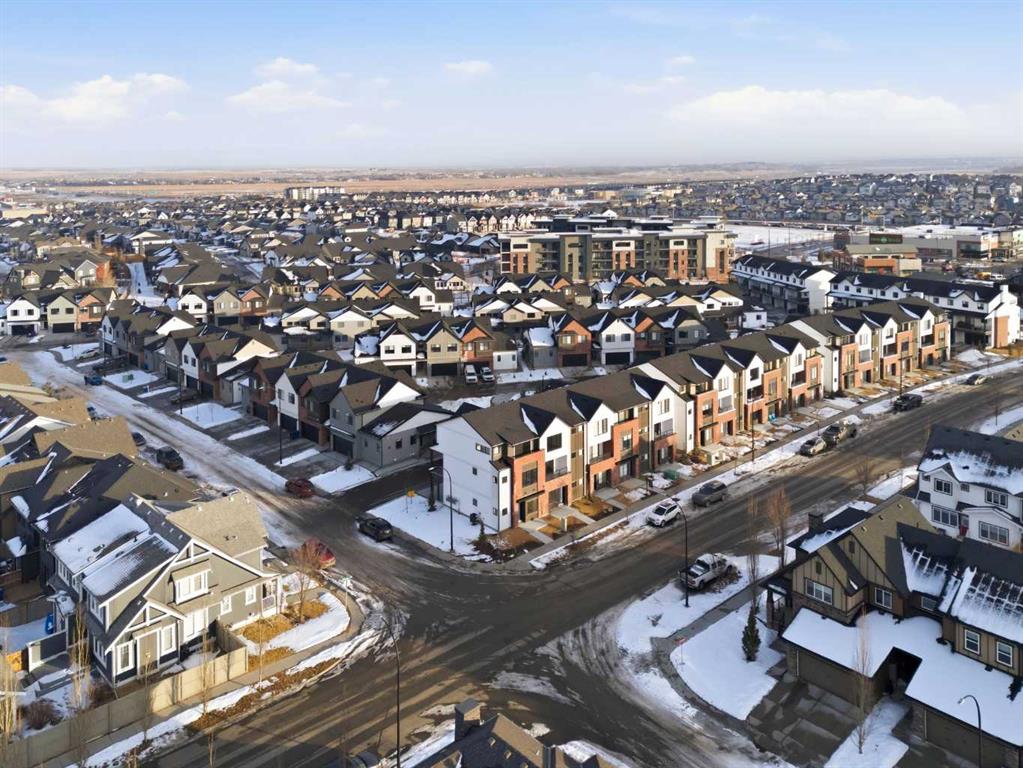 A sophisticated 3-storey masterpiece nestled in the heart of Cooper’s Crossing—an 13th-time recipient of Airdrie’s "Best Community" award. This award-winning home from the Vesta Elevate Collection seamlessly blends contemporary architecture with upscale interior finishes, offering a low-maintenance sanctuary for those who refuse to compromise on style or convenience. The open floor plan is designed with a focus on modern livability featuring 3 bedrooms, 2.5 bathrooms and a flex room ideal for a home office, gym or additional living space. The home features a thoughtful layout across three levels. A bright, open-concept living area is the heart of the home. The gourmet kitchen showcases the full-height cabinetry, sleek modern finishes, and generous prep space that flows effortlessly into the dining and living areas. A convenient powder room completes this level, making it ideal for entertaining. On the upper level discover a deluxe primary suite designed as a private retreat. The secondary bedrooms are a rare find—impressively oversized compared to typical townhome designs, offering plenty of space for family, guests, or hobby rooms. In a market where parking is a premium, this home stands alone. It boasts a double attached garage plus 2 car driveway —a rare and highly coveted four-car setup that provides ultimate convenience for multi-vehicle households. Step outside and experience true walkability. You are perfectly positioned directly across from Cooper’s Town Promenade, giving you instant access to: Save-On-Foods, Shoppers Drug Mart, and Pet Valu. Starbucks, McDonald’s, and local eateries. Miles of pathways, lush parks, and top-rated schools are just steps from your front door. Whether you are an active professional or a growing family, this home offers the perfect balance of "elevated" interior design and a vibrant, award-winning neighborhood.