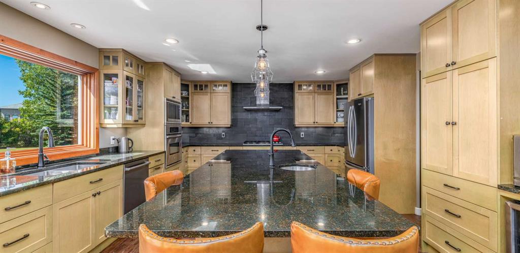 The open-concept main floor is designed for connection, featuring a beautifully renovated chef’s kitchen with custom cabinetry, granite countertops, and deluxe stainless steel appliances—ideal for entertaining or enjoying family meals. Relax by the wood-burning fireplace in the cozy living room, or head outside to the back deck with a pergola and built-in BBQ, made for summer evenings and starlit gatherings.