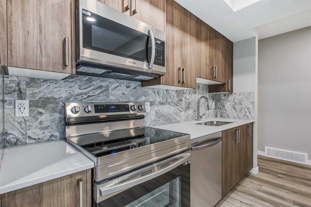 BETTER THAN NEW, AND GENERATING AIR BNB REVENUE FROM THE LEGAL BASEMENT SUITE. This Excel Built Home is called the Windsor, and is one of the builder's favorite plans. This delightful home has been NICELY UPGRADED with LVP flooring, quartz countertops, Taller cabinetry adding elegance and grandeur to the kitchen. On the main floor you have a den/office room with a door giving it privacy and can be used as a main floor bedroom (by adding a wardrobe closet). The main floor living room has an electric fireplace, 9 floor ceiling heights, and modern colors for designer flare. The second floor features a family room with VAULTED CEILING, additional pot lights to illuminate and brighten the space. Upstairs you will find 3 bedrooms (the master with his and her sinks and a stand up shower), bright neutral carpet and paint choices create alluring spaces you will love. The LEGAL BASEMENT SUITE can be rented or used for extended family that may stay for long visits. Currently, the suite is registered with AIR BNB and is currently occupied until July 2026. The main house is vacant and READY FOR A QUICK POSSESSION!