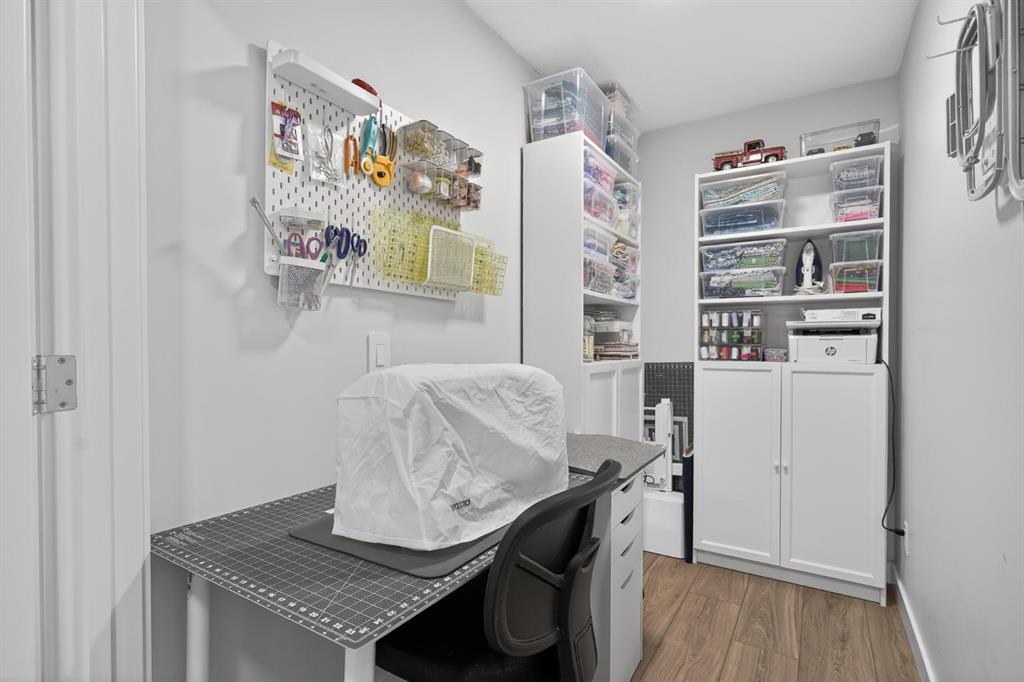The spacious primary bedroom comfortably accommodates a king-size bed and features a walk-in closet along with a private ensuite complete with dual sinks and an upgraded walk-in shower. A second bedroom and versatile den provide flexible space for guests, a home office, or hobbies.