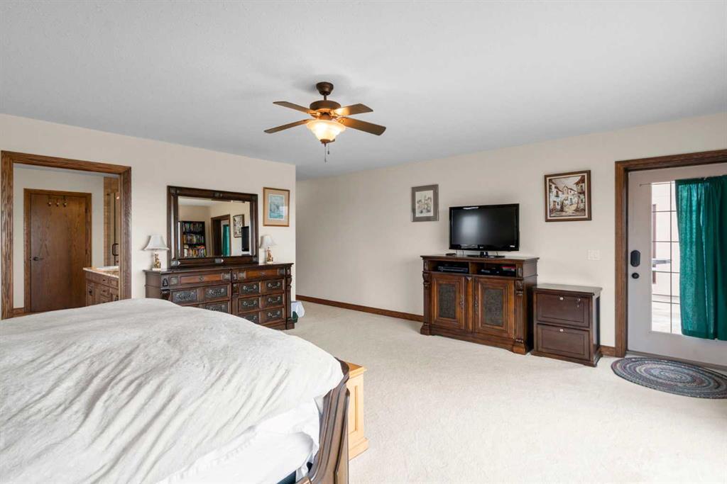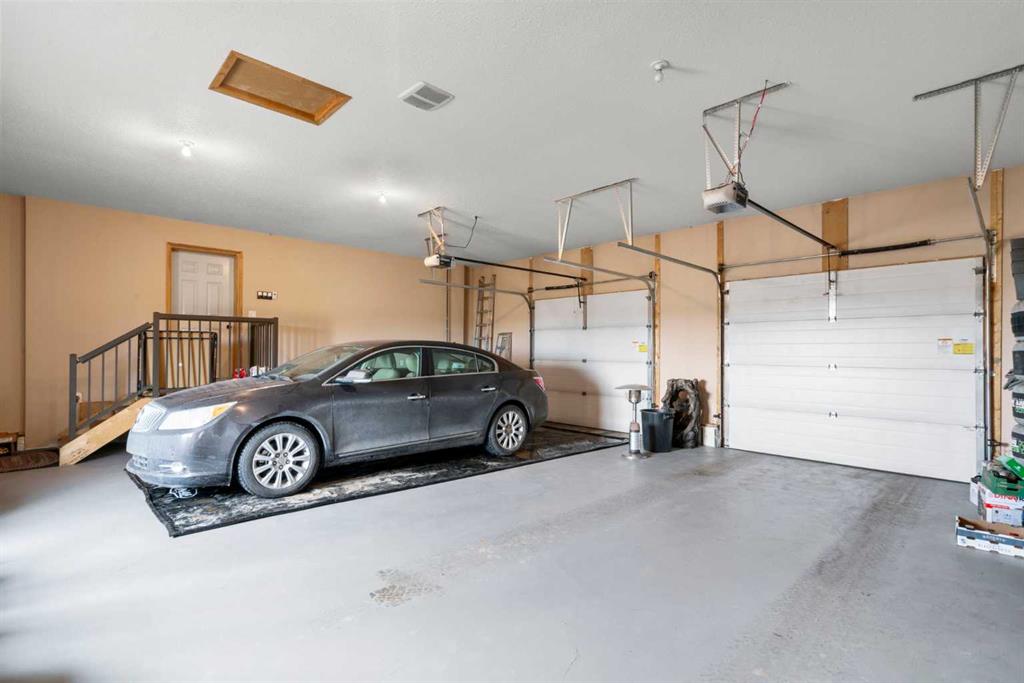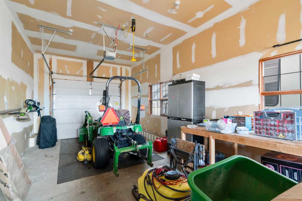 Outdoors, enjoy a west facing composite front deck or a private rear dura-deck with a cedar screened-in porch—perfect for relaxing while taking in the surrounding countryside, natural gas line and large BBQ included!. The triple attached garage features in-floor heating, a separated shop area with an overhead heater, and ample space for vehicles, storage, and hobbies.