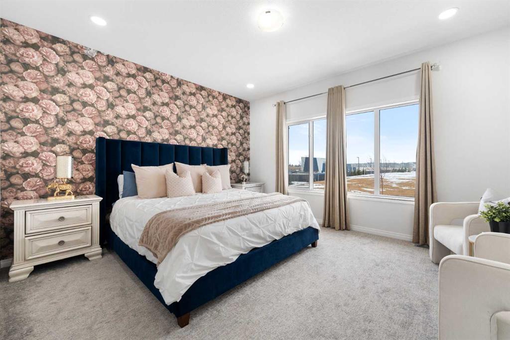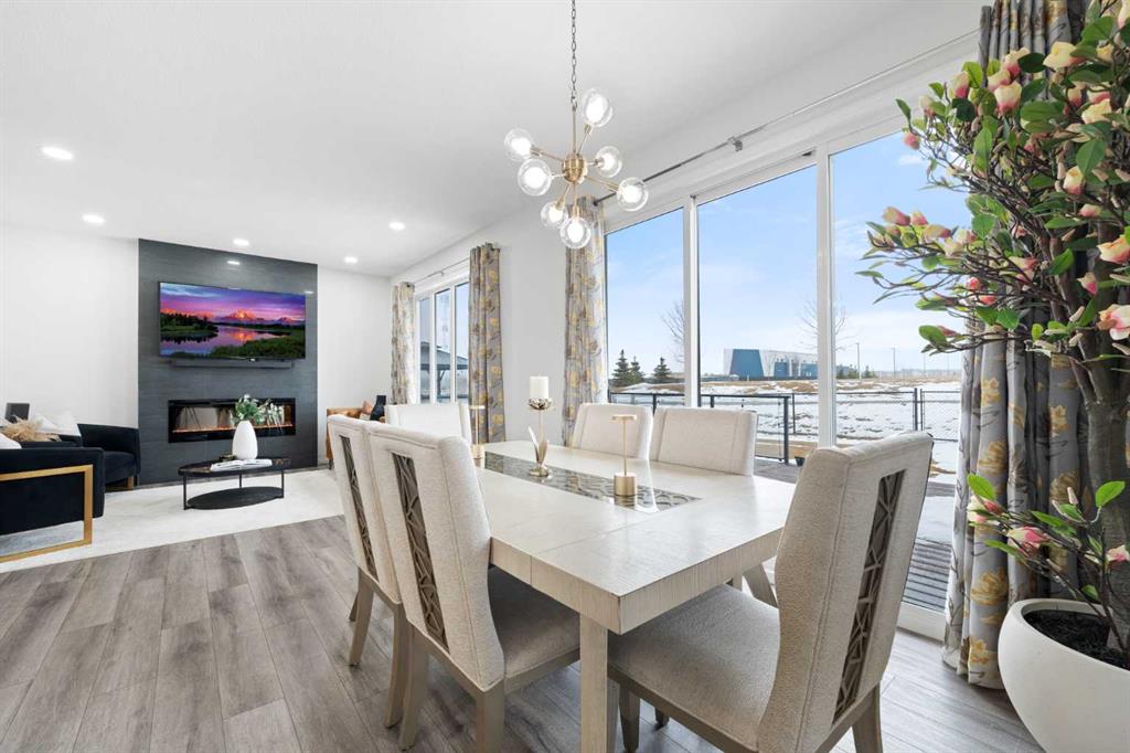 From the moment you enter, you are welcomed by soaring 9-foot ceilings and impressive 8-foot doors that create a grand, open atmosphere. The thoughtfully designed main floor showcases office/flex room, Powder room and a seamless open-concept layout ideal for both everyday living and entertaining. The chef-inspired kitchen is beautifully appointed with built-in appliances, premium finishes, and sophisticated gold fixtures that add a touch of modern luxury throughout the home.