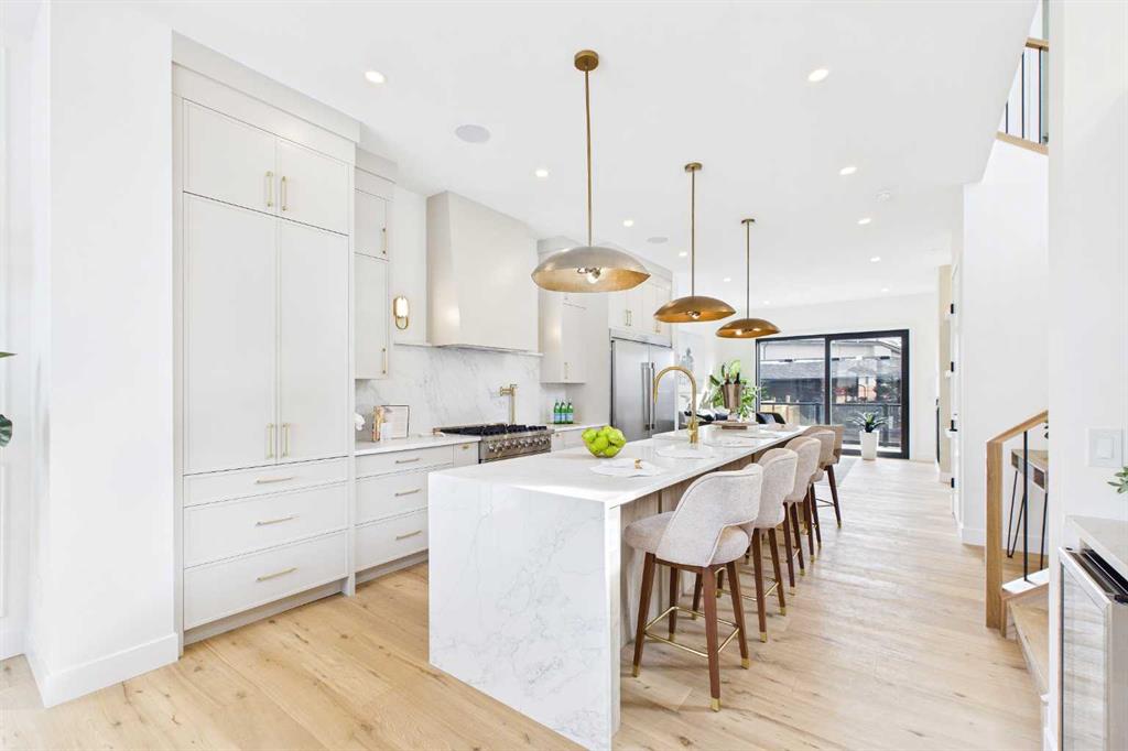 ** Open House March 7 & 8 - 2:00 pm to 4:00 pm ** Nestled on one of Spruce Cliff's most coveted streets, 418 36 Street SW stands as a testament to modern luxury and thoughtful design. Imagine a family envisioning their future, or a couple with growing needs, pulling up to their brand-new dream home. This isn't just a house; it's the backdrop for their next chapter. Stepping inside, the 10-foot ceilings on the main floor immediately captivate. Sunlight streams through unique European-style windows, which elegantly tilt or swing open, inviting the gentle breeze. The chef's kitchen is a true culinary sanctuary, featuring a premium stainless steel appliance package with a 6-burner gas range and a 60-inch fridge/freezer, a convenient pot filler, and ample prep space on the stunning 13-foot island with its farmhouse sink and waterfall quartz edge. Sleek painted thin-profile shaker cabinets and a dedicated coffee station add to the thoughtful design. Warm hardwood floors flow seamlessly, guiding them through the open-concept space. The dining area, with its stylish feature wall, promises intimate dinners. In the living room, the fully Venetian plastered gas fireplace beckons cozy evenings, while patio doors open onto a spacious composite deck, engineered for no maintenance and long-lasting durability, complete with a gas connection for BBQs. A clever secret, a hidden door, conceals the chic two-piece bathroom. As they ascend the hardwood staircase, the second floor unfolds into a haven of comfort. The large primary bedroom, a serene retreat, boasts a captivating feature wall, vaulted ceilings and a spa-like five-piece ensuite. The two additional bedrooms offer ample space for children or guests, serviced by a beautifully appointed four-piece bathroom. A dedicated office, complete with a built-in desk, provides a quiet space to focus. Hardwood floors continue throughout this level. But the story doesn't end there. Downstairs, a fully independent, two-bedroom legal suite, with durable LVP flooring, presents a world of possibilities. Perhaps for visiting family, or as a smart investment, offering the flexibility of long or short-term rentals. Beyond the immediate charm, this home offers hidden strengths and smart features. The party wall, built to code with upgraded insulation, an extra layer of 5/8" drywall, and resilient channels (Sound Bar), ensures unparalleled soundproofing. The thoughtful pre-wiring for A/C, built-in speakers, central vacuum, and Cat6 in the office and bedrooms speaks to a home designed for convenience and the future. 418 36 Street SW isn't just a new build; it's an invitation to a lifestyle. It's the beginning of countless memories and the quiet comfort of knowing you've found your forever home on a street where quality and community converge.