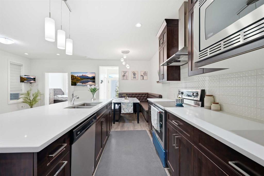 Step into a bright, open-concept masterpiece designed for the modern lifestyle. The main level immediately impresses with two distinct living areas, offering the perfect balance for a formal sitting room and a cozy family lounge. The heart of the home is the upgraded gourmet kitchen, featuring premium cabinetry and sleek finishes that will delight any home chef. Uniquely, this floor includes a rare main-floor bedroom and a full 4-piece bathroom, providing an ideal setup for guests, seniors, or a private home office. Ascend to the second floor, where the central bonus room serves as the ultimate family hub. Bathed in natural light from two stunning skylights, this space feels airy and expansive. The primary suite is a true sanctuary, complete with a private ensuite bathroom and a spacious walk-in closet. Two additional generously sized bedrooms and a convenient upper-floor laundry room ensure effortless daily living for the whole family. The fully finished basement ( Ill-legal ) serves as a versatile lower level with a separate entry and its own dedicated laundry. This space includes a large living area, a full bathroom, and two additional bedrooms, making it an ideal setup for extended family or a private retreat. Step outside to a fully fenced, low-maintenance backyard designed for relaxation, not yard work. Enjoy summer BBQs on the spacious deck and take advantage of the oversized detached garage, offering extra room for larger vehicles or a workshop. Situated in the heart of Cornerstone, you are minutes from all major banks, top-rated schools, and pristine parks. Food lovers will appreciate the proximity to the Highstreet and a vibrant array of Asian grocery stores and restaurants. With easy access to Stoney Trail and the Calgary International Airport, this is the perfect north-east location.