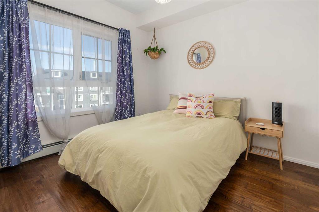 Welcome to 1403, 279 Copperpond Common SE – a beautifully updated two-bedroom, one-bathroom apartment in the desirable community of Copperfield. Offering 552 square feet of comfortable and contemporary living space with the low condo fee of $317.30. this condo is the perfect stylish, well kept, move-in-ready home. Upon entering, you'll immediately notice the fresh feel created by marble tile in the foyer, 9ft ceilings, premium engineered hardwood flooring, beautiful views and lighting. The open-concept design seamlessly connects the living, dining, and kitchen areas, providing an ideal space for entertaining and everyday meals. The kitchen features all stainless steel appliances, ample counter space, and abundant cabinetry. Adjacent to the kitchen, the dining area flows naturally into the spacious living room, bathed in natural light from large windows. The primary bedroom is spacious and shares the large NW facing windows. The second bedroom is equally spacious and versatile, perfect for a guest room, home office, or additional living space. The 4-piece bathroom is conveniently located next to the entrance and out of the way. The in-suite laundry adds an extra layer of convenience to your daily routine. Step outside onto the Northwest-facing balcony, where you'll find a gas hook-up perfect for BBQ enthusiasts, making it an ideal spot for outdoor dining and relaxation. Additionally, there is one titled parking surface stall and a storage locker in the parkade for even more convenience. Located just minutes from shopping, restaurants, public transportation, and many other amenities, with quick access to the South Health Campus, this condo offers both comfort and convenience in a prime location.