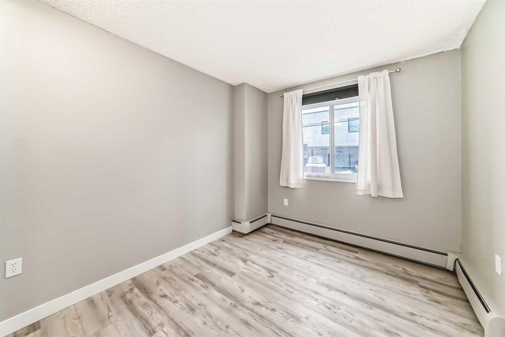 WHY PAY RENT?! Conveniently located in the heart of popular Sunalta in a quiet concrete building, just steps from the C-Train station and within walking distance of numerous breweries, pubs, restaurants, and cafés, this stylish 2 bedroom end-unit condo offers exceptional value! Renovated throughout, it features an efficient galley-style kitchen with granite counters, maple cabinets, and newer stainless steel appliances including a Miele dishwasher, along with an adjoining dining area and bright living room. Both bedrooms are generously sized, and the renovated bathroom features a deep soaker tub. You’ll love the convenience of in-suite laundry with newer front-loading machines, plus plenty of storage with several large closets and an underground storage locker. A rare highlight is the private fenced 10x11 patio/yard that opens onto another fenced area, creating a unique outdoor space to enjoy. The unit also includes a secure heated underground parking stall! This pet-friendly building (with board approval) offers amenities including an enclosed bike storage room, his-and-hers saunas, underground storage lockers, and underground parking, and is responsibly managed with a reasonable condo fee that includes heat and water. Call your favorite Realtor to arrange a private viewing!