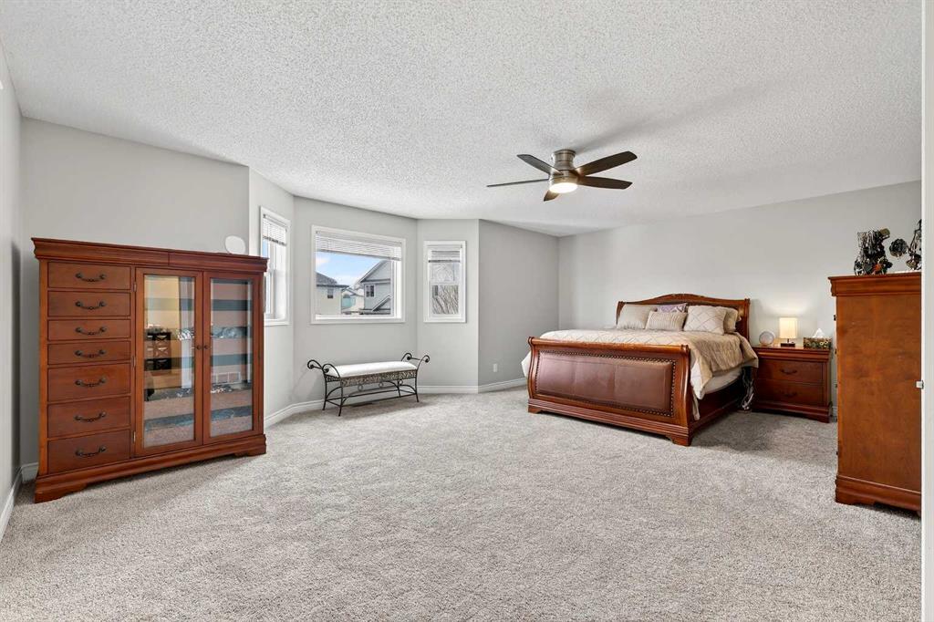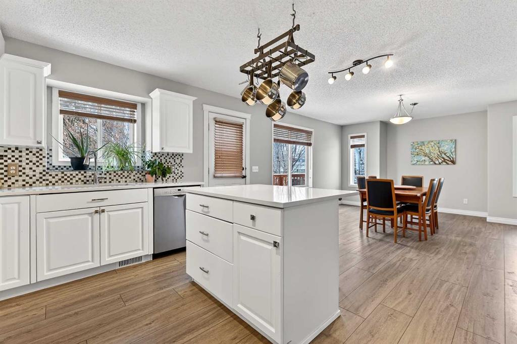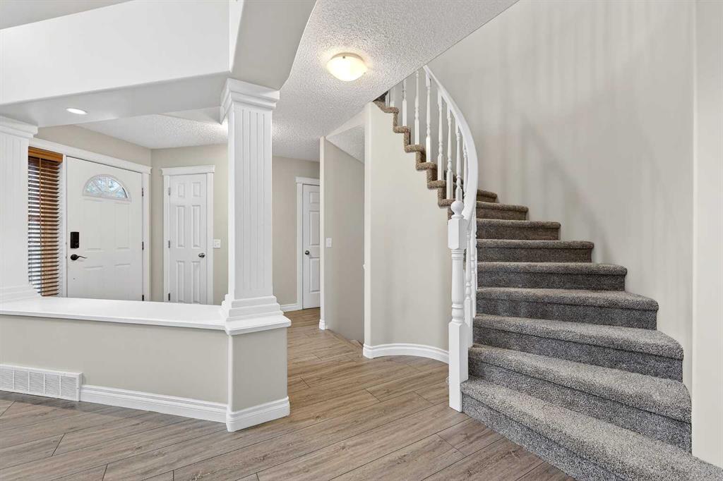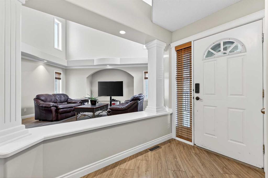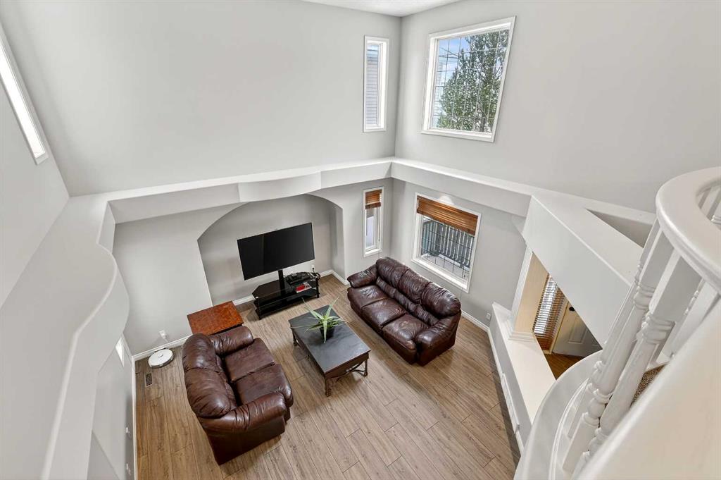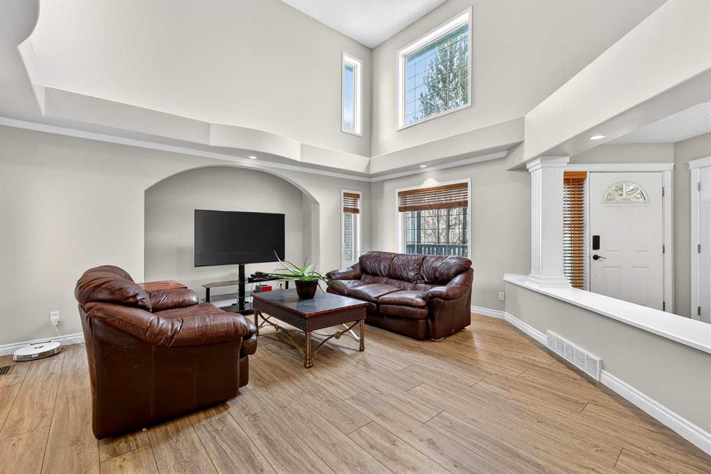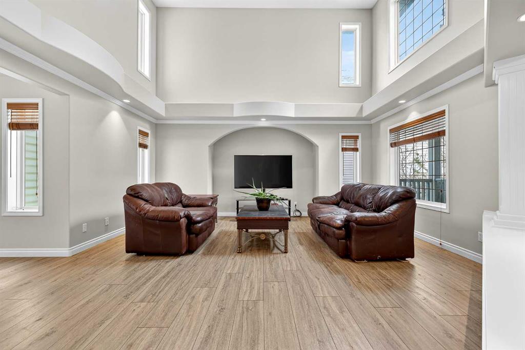 Welcome to 125 Crystalridge Drive, nestled in the highly sought-after community of Crystal Ridge in Okotoks—a postcard-perfect town where small-town charm meets modern convenience. Known for its historic Old Towne, scenic pathways, and wonderful walkability to quaint coffee shops and locally loved restaurants, Okotoks offers a lifestyle that is both vibrant and relaxed. From ball games and community events to everyday amenities just minutes away, it’s easy to see why this is considered one of the most desirable places to raise a family. Presenting over 3,300 square feet of newly refreshed developed living space, this beautifully updated home offers an abundance of room for both everyday living and entertaining. From the moment you step inside, you are welcomed by a stunning open great room with soaring 17-foot ceilings and expansive windows that fill the space with natural light. Brand new luxury vinyl plank flooring flows throughout the main level, creating warmth and cohesion, while a three-sided feature fireplace provides an elegant focal point enjoyed from both the living and dining areas. The spacious dining room seamlessly connects to the refreshed kitchen, where thoughtful updates include brand new quartz countertops, central island, stylish backsplash, refinished cabinetry, corner pantry & new fridge and stove—perfectly designed for both family living and entertaining. Completing the main level is a dedicated office or den, a convenient powder room, and a large laundry area. A graceful curved staircase leads to the upper level where thoughtful design continues. Two secondary bedrooms and a full main bathroom are situated on one side, while an open catwalk with banister leads to the impressive primary retreat. This expansive bedroom offers ample space for a full suite of furnishings and features a beautiful walk-in closet accessed through double French doors. The five-piece ensuite is a relaxing sanctuary with dual vanities, a deep soaker tub, standalone shower, and a skylight that fills the space with natural light. The fully finished basement expands the home’s versatility with two additional bedrooms, a large recreation room, a flexible bonus space, a full bathroom, and a wet bar—ideal for entertaining guests or creating the ultimate family gathering area. Brand new carpet throughout the upper level and basement adds comfort and a fresh finishing touch. Situated on a large lot with convenient back lane access, the property offers excellent potential for RV accessibility to the backyard. The location is equally impressive—walking distance to schools and the beloved Crystal Shores Lake, Okotoks’ only lake community. Here, residents enjoy four seasons of recreation, from summer days spent swimming, fishing, and playing beach volleyball to hockey games and skating in the winter. With the warmth of a small-town community and quick access to Calgary, Okotoks truly offers the best of both worlds-where families grow, memories are made and community truly matters.