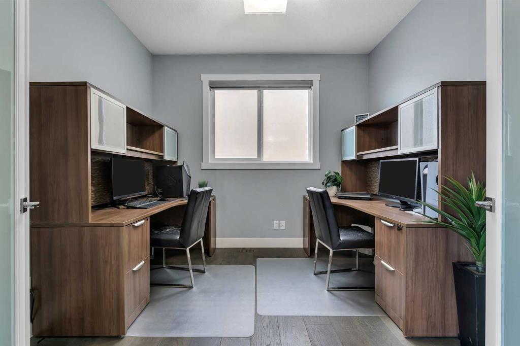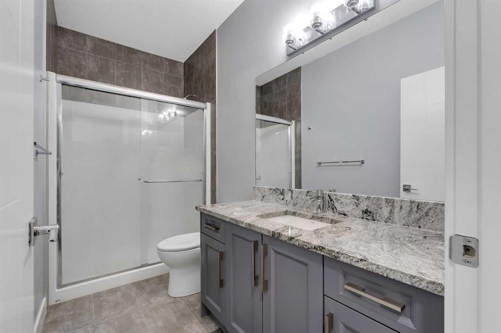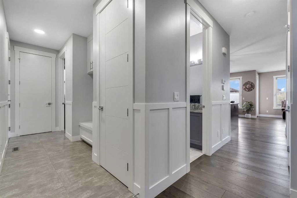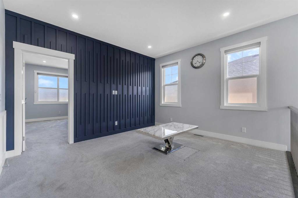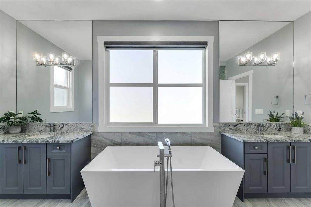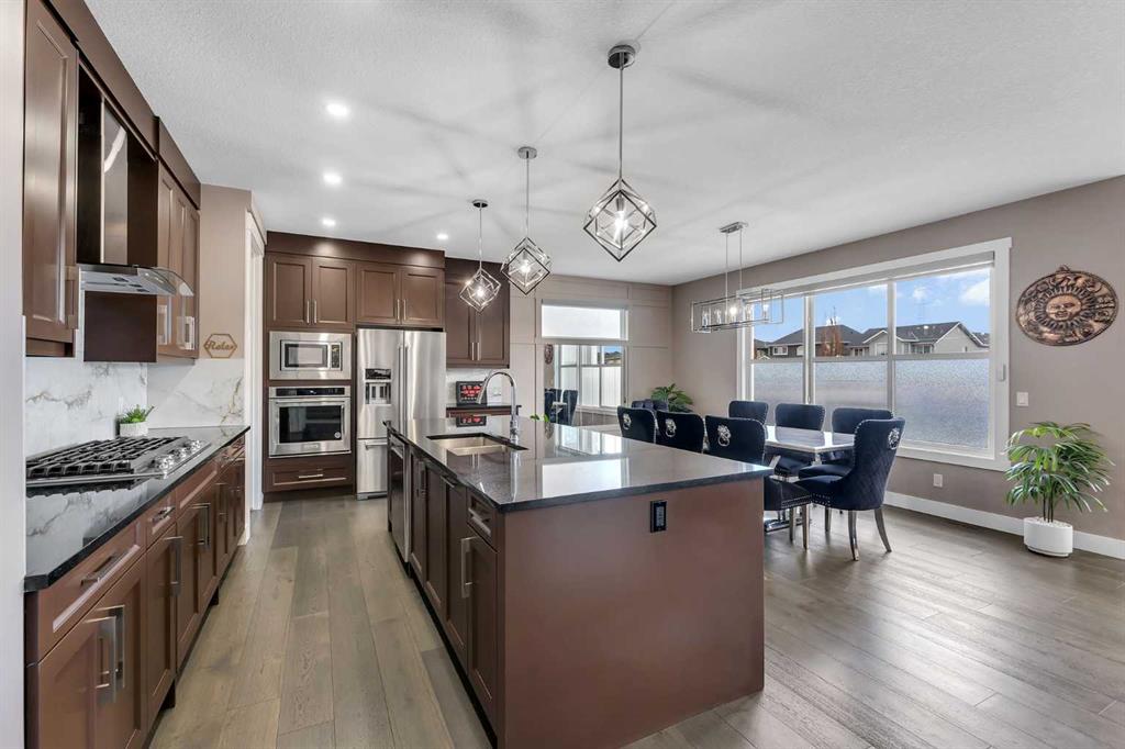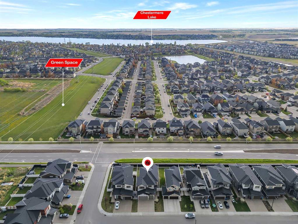 Experience luxury living in this CUSTOM-BUILT HOME OFFERING OVER 3,700 SQFT OF TOTAL DEVELOPED LIVING SPACE, located in the heart of Chestermere—just steps from the canal, perfect for peaceful walks or bike rides toward Calgary for those with an active lifestyle. This WEST-FACING HOME offers striking curb appeal with an EXPOSED AGGREGATE DRIVEWAY, VINYL FENCING, EXTENDED CONCRETE WALKWAY, and a MAINTENANCE-FREE BACKYARD PATIO WITH BBQ GAS LINE. The home also features a LARGE, PRIVATE FRONT ENTRY thoughtfully positioned to provide added privacy and NOT DIRECTLY VISIBLE FROM NEIGHBOURING HOMES. Step inside to a grand OPEN-TO-BELOW FOYER featuring 8FT DOORS THROUGHOUT THE MAIN LEVEL, 9FT KNOCKDOWN CEILINGS, WAINSCOTING, FEATURE WALLS, and ENGINEERED HARDWOOD FLOORS. The main level also includes a DEDICATED FLEX ROOM, OPEN MUDROOM WITH DUAL COAT CLOSETS, MOTORIZED BLINDS THROUGHOUT, and is ROUGHED-IN FOR CENTRAL VACUUM. The CHEF’S KITCHEN is a true showstopper with an OVERSIZED ISLAND, GRANITE COUNTERTOPS THROUGHOUT, SOFT-CLOSE CEILING-HEIGHT CABINETRY, TWO GAS RANGES, TWO DISHWASHERS, BUILT-IN OVEN AND MICROWAVE, HIGH-POWERED HOOD FAN, and a fully equipped SPICE KITCHEN WITH GARBURATOR. The GREAT ROOM features a stunning FLOOR-TO-CEILING TILED GAS FIREPLACE with IN-CEILING SPEAKERS, creating the perfect space for entertaining. Upstairs offers 4 SPACIOUS BEDROOMS, including TWO MASTER SUITES. The primary retreat features a SPA-INSPIRED 5-PIECE ENSUITE with a STANDALONE TUB, CUSTOM STEAM SHOWER, DOUBLE VANITY, CEILING-HEIGHT MIRRORS, TOILET WITH WINDOW, and a WALK-IN CLOSET WITH BUILT-INS. The second master includes its own 4-PIECE ENSUITE WITH STAND-UP SHOWER. Two additional bedrooms and a full bathroom with stand-up shower complete the upper level, along with a BONUS ROOM WITH FEATURE WALL, LAUNDRY ROOM WITH SINK, and CAT5 WIRING. The FULLY FINISHED BASEMENT features a SEPARATE SIDE ENTRANCE, 2 BEDROOMS, a FULL BATHROOM WITH TILED STAND-UP SHOWER, ROUGHED-IN LAUNDRY, and a FUTURE WET BAR AREA ROUGHED-IN WITH 220V POWER AND VENTING, along with a LARGE OPEN FAMILY ROOM and DEDICATED STORAGE ROOM—offering excellent flexibility for extended family or entertaining. Additional highlights include a HEATED AND INSULATED GARAGE WITH GAS LINE, HOME SECURITY SYSTEM WITH 7 CAMERAS + NVR, AC ROUGH-IN, and the peace of mind of REMAINING NEW HOME WARRANTY.