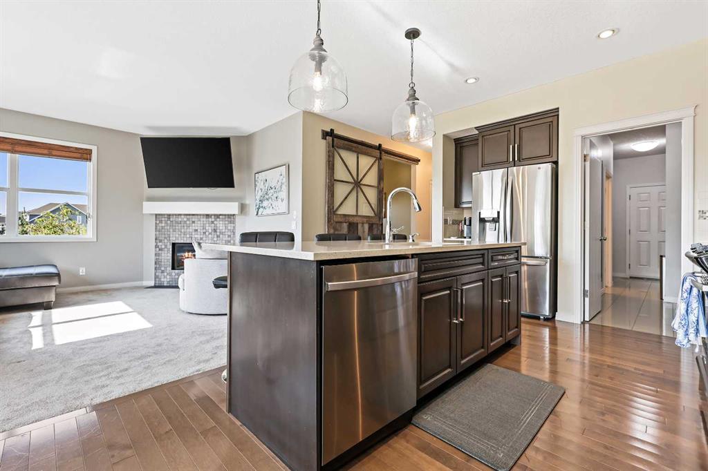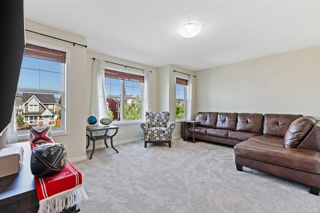 Searching for a 3-bedroom detached home in Auburn Bay with pond views and a sun-filled backyard? 415 Auburn Bay Avenue SE offers over 2,200 sq. ft. of living space, desirable south and west backyard exposure for all-day light, and direct access to pathways, schools, and the lake. You’ll immediately appreciate the home’s unique positioning, with no neighbours on the west side—providing added privacy, extra natural light and direct views of the adjacent green space. From the front steps, enjoy watching Auburn Bay’s annual Christmas parade pass by and create lasting family traditions. Inside, the bright and thoughtfully designed main floor centres around a spacious kitchen featuring stainless steel appliances and quartz countertops. The layout flows seamlessly into the dining and living areas, ideal for everyday family living and entertaining. At the rear of the home, large windows showcase the backyard, where the south and west exposure fills the space with sunlight throughout the day. Step onto the deck to take in peaceful pond views, access the walking path directly, and enjoy watching the Community's seasonal fireworks reflect over the water. Upstairs, the primary bedroom offers stunning mountain views and serves as a relaxing retreat, complete with a five-piece ensuite. New carpet throughout and new tile flooring in the bathrooms adds a stylish and modern touch, while two additional bedrooms provide comfortable space for children, guests, or a home office. With over 2,200 sq. ft. of living space and walking distance to top-rated schools, shopping, restaurants, and Auburn Bay Lake, this three-bedroom detached home delivers the light, lifestyle, and location families seek in one of Calgary’s most desirable lake communities. Book your private showing today!