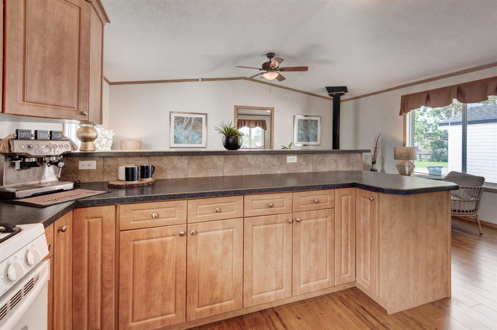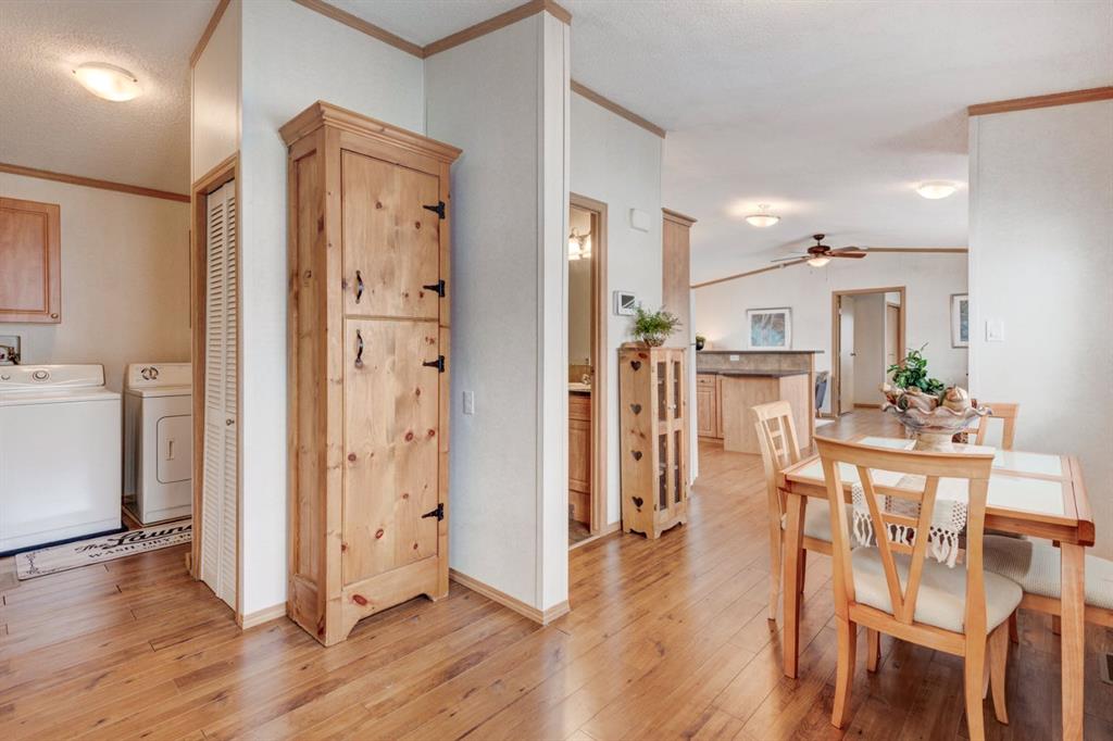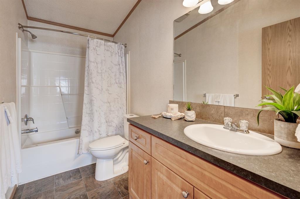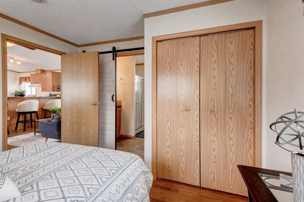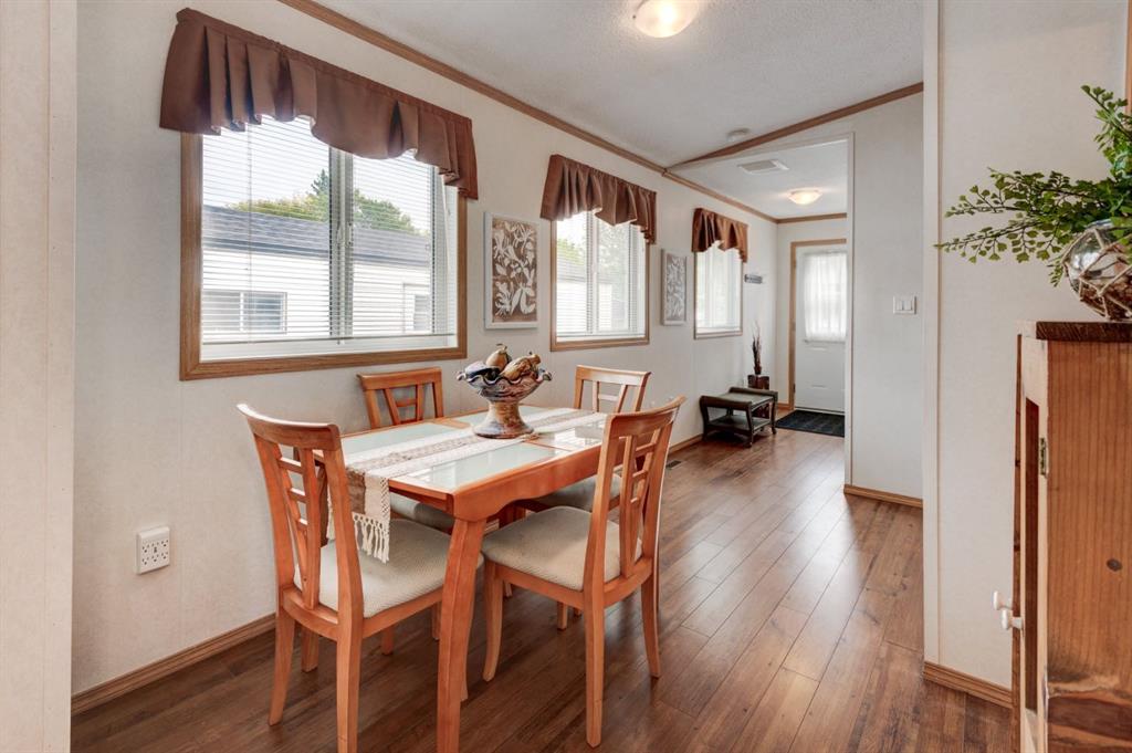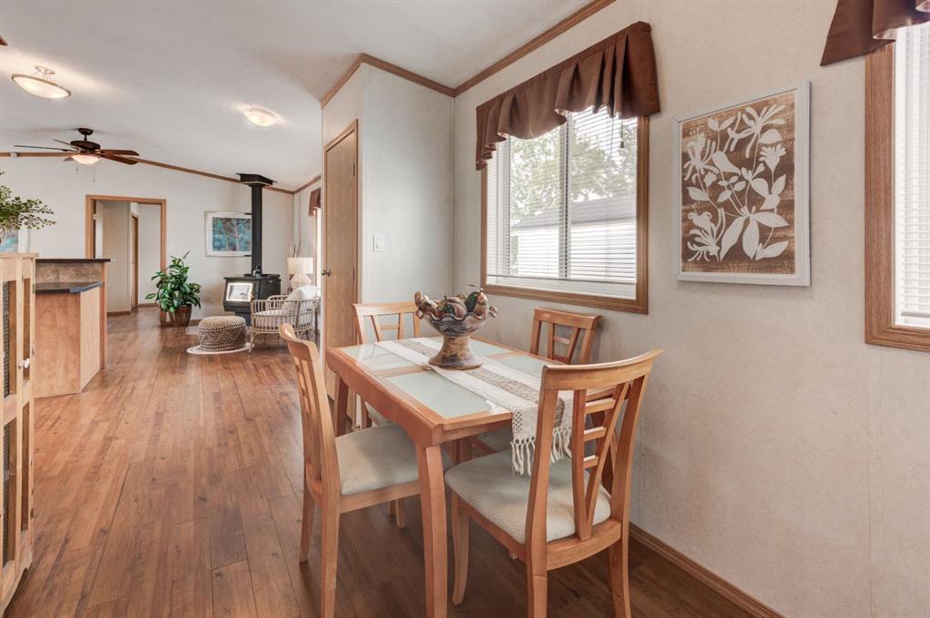 Enter into this immaculate and charming Custom Built 2013 manufactured home, 1120 sf home located in the plus-18 section of Mountview. Prepare to be impressed with everything this home has to offer. It is spacious with vaulted ceilings, bright and airy with the many windows in the living area, and the entire home, and open concept living. Click on the interactive iGuide for a virtual tour and "virtual walk through". This large kitchen has beautiful wood cabinets, loads of counter space to explore your culinary side, prep for your cooking and baking adventures plus plenty of room to move around. Newly installed dishwasher, newer gas stove, newer fridge. There is a large counter peninsula island that provides even more space for eating or entertaining. Adjacent to the kitchen is a spacious dining area that is drenched in light. The living room has ample space for your furniture and the open den area provides a wood burning woodstove (WETT inspection done) to keep you warm and cozy. This is a 2013 model, 20x56, with two bedrooms, two bathrooms, and has everything you could need. The primary bedroom at the front of the home has a huge ensuite with soaker tub, separate shower, and good size vanity. This bedroom can easily accommodate a king bed. The second bedroom is at the opposite end, along with a 4-piece bath, large separate laundry room with a new on-demand hot water system and back entry hall. This home has a new composite vinyl fence, new skirting, new front deck, new eavestrough and downspouts, new sewer pipes, and a newly installed electrical hookup and meter, with a City of Calgary permit. Don’t wait to view this property - you won’t be disappointed! Lease approval is required. Pets are allowed with approval. Lease rate of $1100 per month includes water, sewer, garbage pick up and snow removal. Sunpark Mountview is across from Elliston Park, minutes to East Hills Shopping Centre, Stoney Trail, International Avenue, and all levels of transit, shopping, restaurants and amenities.