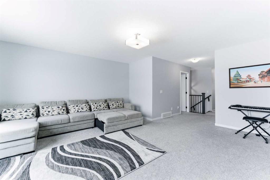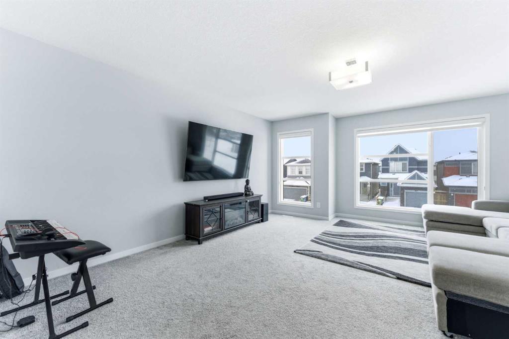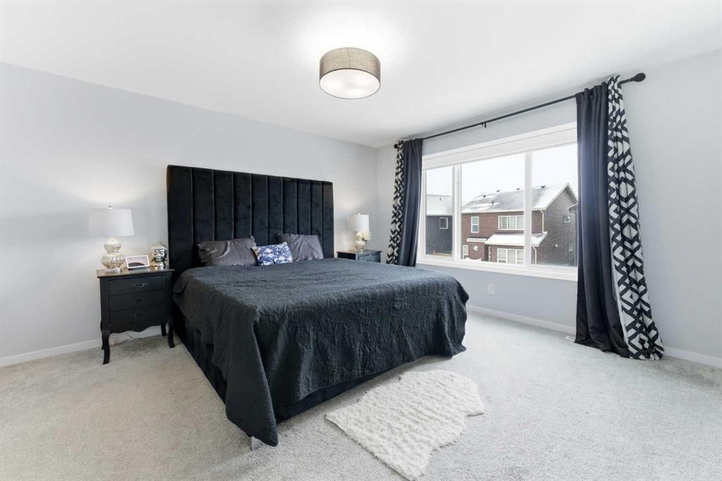 The gorgeous chef-inspired kitchen is designed for both functionality and style, featuring stainless steel appliances, ceiling-height cabinetry, quartz countertops, a large island with seating, a built-in microwave, a beverage cooler, and ample counter space for cooking and hosting. The kitchen flows seamlessly into the spacious dining area, ideal for family meals and gatherings. A convenient main floor powder room completes this level. Upstairs, you will find three generously sized bedrooms, including a large primary bedroom with a private ensuite and walk-in closet, as well as another full bathroom and upper-floor laundry for added convenience. The fully developed basement expands the living space and includes a recreational area currently used as a theatre room, a fourth bedroom presently set up as a home gym, and a full 3-piece bathroom, making it perfect for guests or extended family. Additional highlights of this home include centralized air conditioning for year-round comfort and high-performance triple-glazed windows that enhance energy efficiency and keep the home quiet and comfortable. Outside, the property features a double attached garage and a well-maintained lot, completing this exceptional home that blends modern design, comfort, and functionality. This move-in-ready home offers space, style, and comfort for the whole family. Call today to book a private viewing.