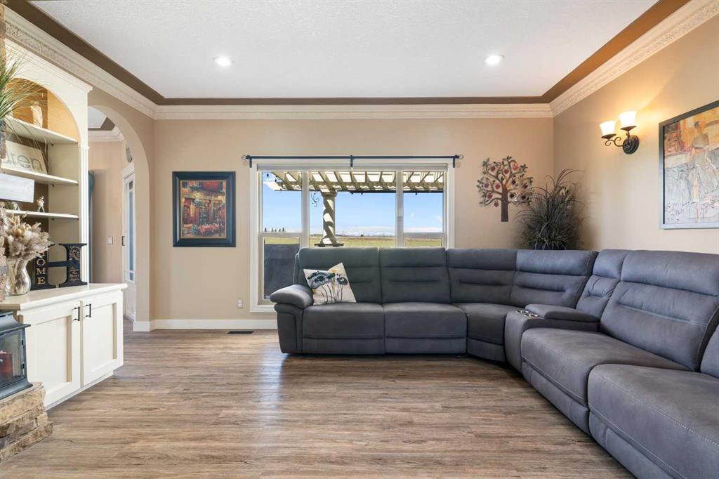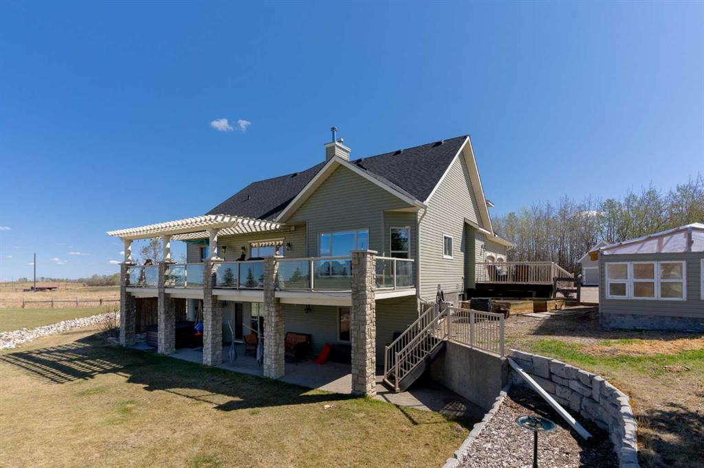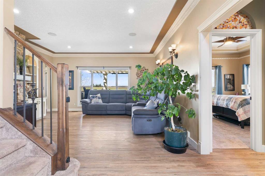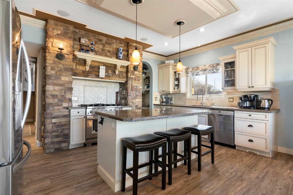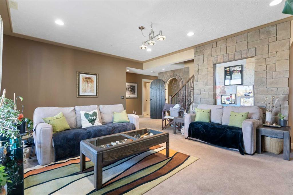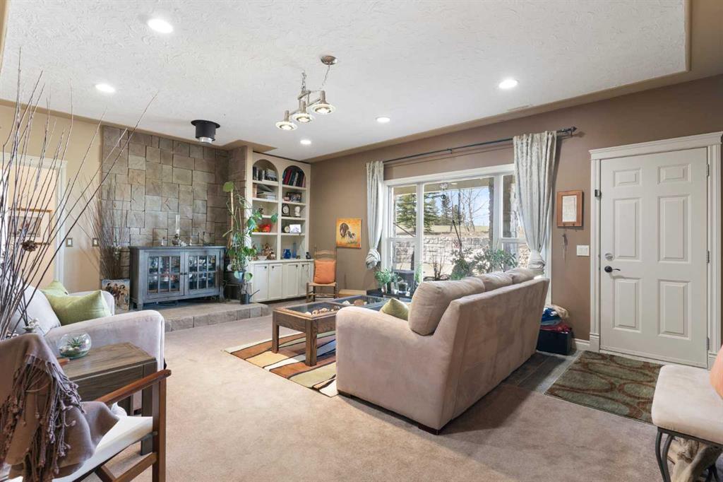 ** MOUNTAIN VIEWS** BUNGALOW** Welcome to this sensational estate nestled on 2.58 acres, offering breathtaking mountain views from your very own WEST FACING rear deck. From the moment you step inside this home you’re welcomed by a grand entrance featuring soaring ceilings and an abundance of natural light. The main level boasts a spacious mudroom leading to a secondary entrance, a convenient 2-piece powder room, a luxurious primary suite, and meticulous craftsmanship that is immediately apparent with the intricate crown moulding throughout . The primary bedroom features a European-inspired 4-piece ensuite bathroom designed for ultimate comfort and style. The kitchen is a showstopper with a stainless steel refrigerator and dishwasher updated in(2021), a beautiful ceramic tile backsplash, granite countertops, and a new oversized gas range(2024) with exquisite stone surround that is sure to take your breath away. Enjoy meals in the large dining area or step out onto the covered deck for al fresco dining with those highly sought after mountain views. You can also work from home in the beautifully appointed main-level office, complete with a cozy gas fireplace with a stunning hand crafted wood surround. Continuing the theme of comfort and elegance, the main level also features in-ceiling speakers and a sprawling living room anchored by another striking fireplace boasting a natural rock surround—perfect for entertaining. Upstairs, you'll find two generously sized bedrooms, a full 4-piece bathroom, and a large storage space—ideal for family living. The walkout basement is a true retreat, highlighted by a dramatic natural rock wall and a unique wooden door leading to your private in-home theatre. Additionally, this level offers two more spacious bedrooms, another 4-piece bathroom, and a massive recreational room—ideal for guests or extended family. The oversized double attached garage is a hobbyist’s dream with in-floor heating and 40-amp service. Comfort is ensured year-round with air conditioning installed in 2024, a shingle replacement in 2017, and recent furnace upgrades that include a new flame sensor and gas valve and new DuradeK in 2025. This home offers the perfect blend of rustic charm, modern luxury, and functionality—truly a must-see. Book your private showing today!