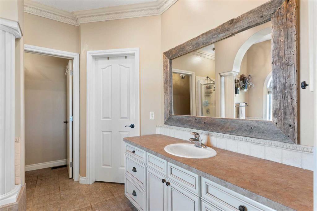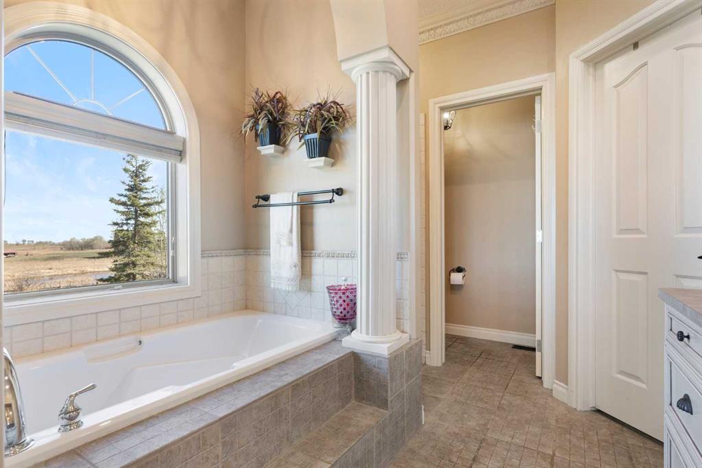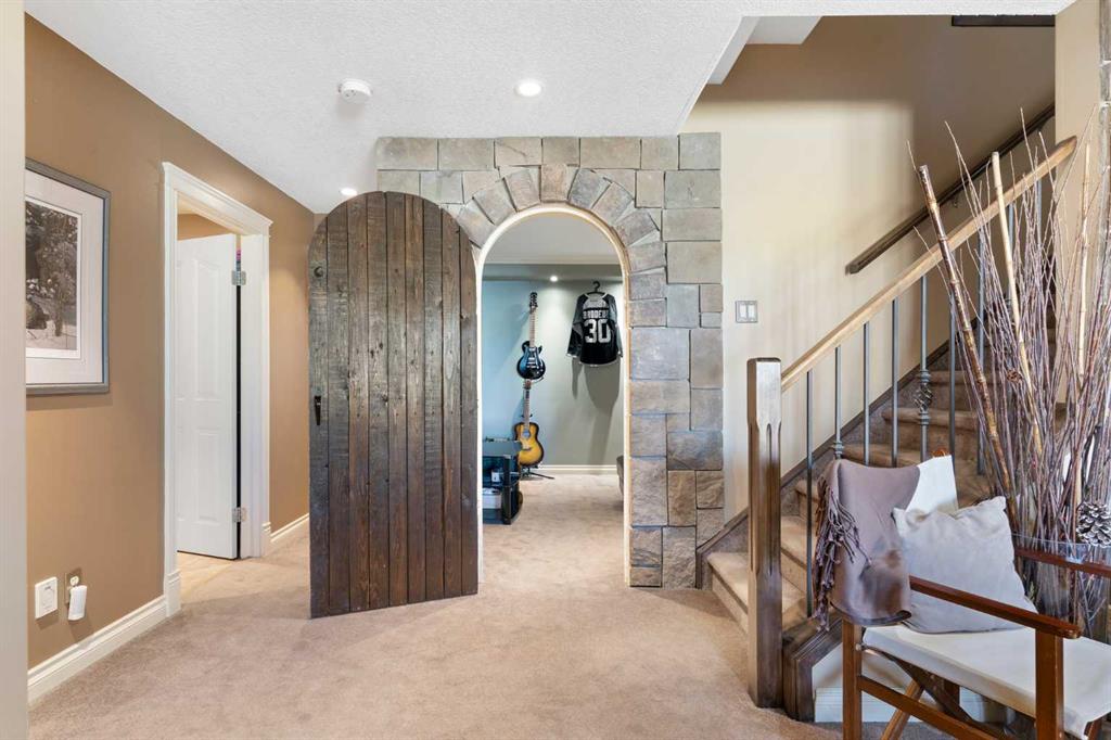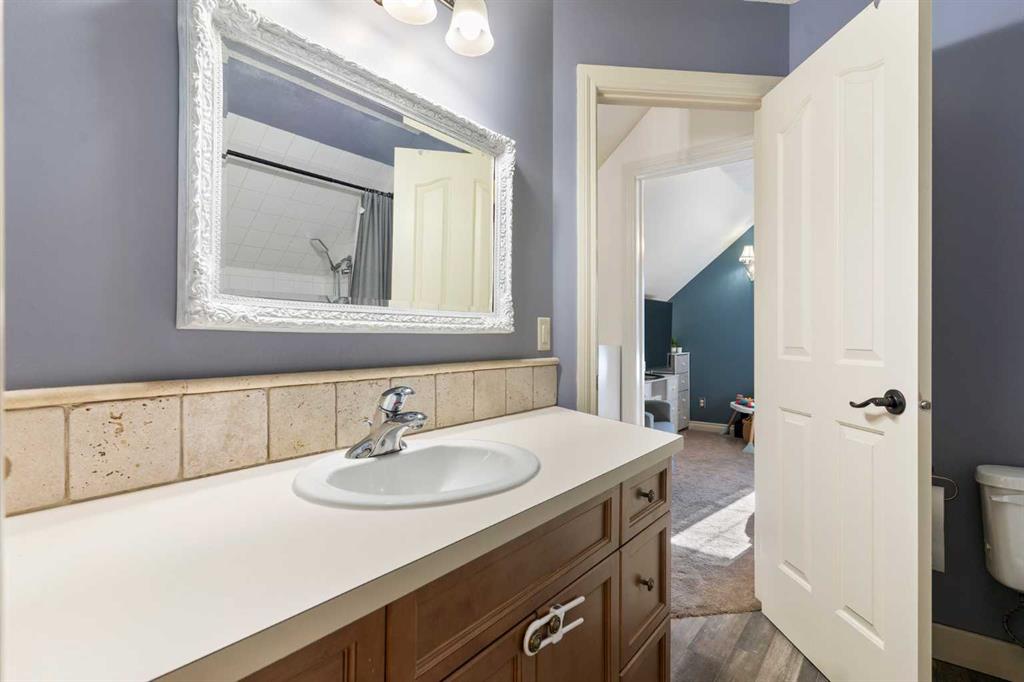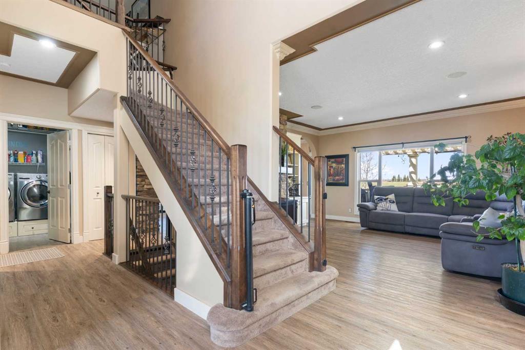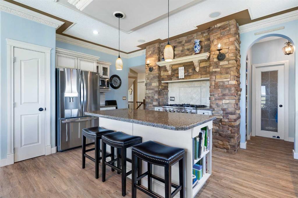 ** MOUNTAIN VIEWS** BUNGALOW** Welcome to this sensational estate nestled on 2.58 acres, offering breathtaking mountain views from your very own WEST FACING rear deck. From the moment you step inside this home you’re welcomed by a grand entrance featuring soaring ceilings and an abundance of natural light. The main level boasts a spacious mudroom leading to a secondary entrance, a convenient 2-piece powder room, a luxurious primary suite, and meticulous craftsmanship that is immediately apparent with the intricate crown moulding throughout . The primary bedroom features a European-inspired 4-piece ensuite bathroom designed for ultimate comfort and style. The kitchen is a showstopper with a stainless steel refrigerator and dishwasher updated in(2021), a beautiful ceramic tile backsplash, granite countertops, and a new oversized gas range(2024) with exquisite stone surround that is sure to take your breath away. Enjoy meals in the large dining area or step out onto the covered deck for al fresco dining with those highly sought after mountain views. You can also work from home in the beautifully appointed main-level office, complete with a cozy gas fireplace with a stunning hand crafted wood surround. Continuing the theme of comfort and elegance, the main level also features in-ceiling speakers and a sprawling living room anchored by another striking fireplace boasting a natural rock surround—perfect for entertaining. Upstairs, you'll find two generously sized bedrooms, a full 4-piece bathroom, and a large storage space—ideal for family living. The walkout basement is a true retreat, highlighted by a dramatic natural rock wall and a unique wooden door leading to your private in-home theatre. Additionally, this level offers two more spacious bedrooms, another 4-piece bathroom, and a massive recreational room—ideal for guests or extended family. The oversized double attached garage is a hobbyist’s dream with in-floor heating and 40-amp service. Comfort is ensured year-round with air conditioning installed in 2024, a shingle replacement in 2017, and recent furnace upgrades that include a new flame sensor and gas valve and new DuradeK in 2025. This home offers the perfect blend of rustic charm, modern luxury, and functionality—truly a must-see. Book your private showing today!