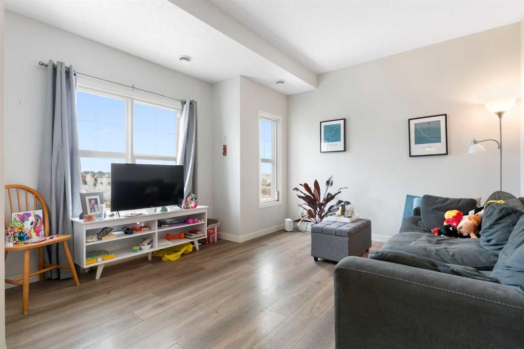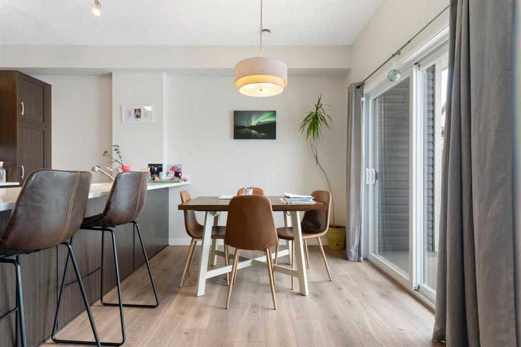 Welcome to this stylish townhome in the family-friendly community of Fireside. Upon entering, you’re welcomed by a bright foyer with stairs leading to the main living level. Upstairs, the spacious kitchen, living, and dining areas flow seamlessly together, creating the perfect space for both everyday living and entertaining. Rich dark wood cabinetry adds warmth, while large windows fill the space with natural light. A convenient two-piece powder room is also located on this level. The top floor features two well-appointed bedrooms, including a primary retreat complete with a walk-in closet and private balcony, an ideal spot to enjoy your morning coffee or unwind in the evening. A full four-piece bathroom and a stacked washer and dryer are also located on this level for added convenience. Situated in the family-friendly Fireside community, this home offers easy access to parks, pathways, schools, restaurants, pharmacy, and more, all while being just a short drive from the mountains and Calgary. Book your showing today to find out why Living in Cochrane is Loving where you Live!