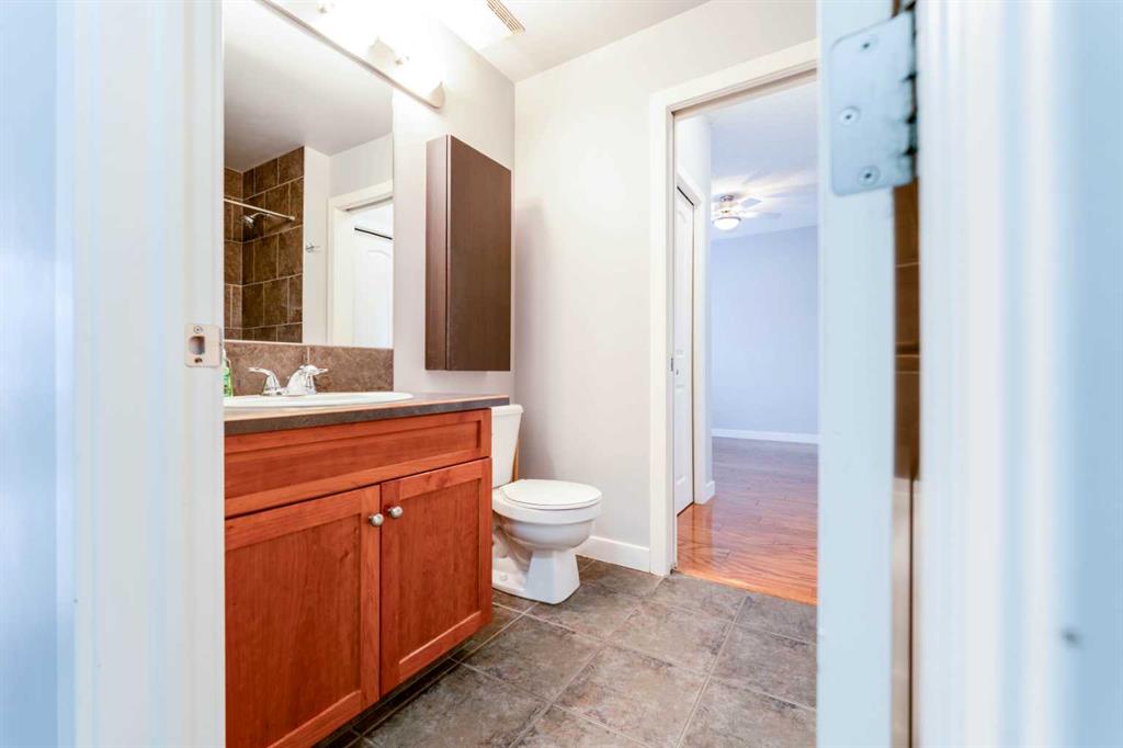 Effortless urban living in Mission’s “Soho”, a quiet low-rise building just steps from 17th Avenue and 4th Street. This bright corner top floor unit offers an open layout, 9' ceilings, engineered oak floors, a well appointed kitchen, in-suite laundry, and a sun-filled SE exposure. Enjoy morning coffee or evening BBQs on the private balcony complete with gas hookup, end your day by the cozy corner fireplace, and unwind in a primary bedroom with his-and-her closets. Includes heated, secured underground parking, storage locker, and visitor parking stalls. Small pets allowed with board approval. This is the Largest one-bedroom in the building, perfect for the busy professional or a couple seeking inner city living.