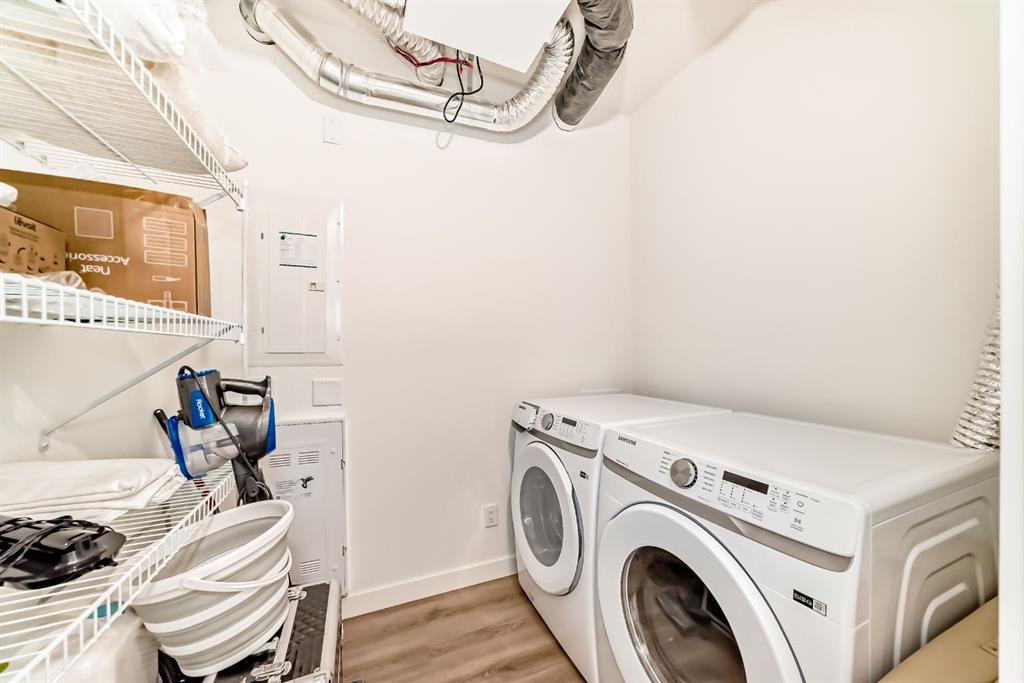 Additional features include air conditioning, luxury vinyl plank flooring, titled underground parking, and a secure storage unit.