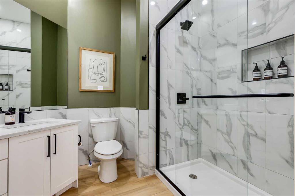 Located in the established community of Hidden Valley, this fully upgraded detached bungalow offers over 2,300 square feet of refined living space with a functional, well-planned layout. With three bedrooms, two and a half bathrooms, and a double attached garage, the home balances comfort and practicality in a convenient northwest location. The main floor welcomes you with a spacious front entrance highlighted by tasteful wainscotting, setting the tone for the finishes carried throughout. Vaulted ceilings and large windows enhance the sense of openness while allowing natural light to fill the space. Durable luxury vinyl plank flooring extends throughout the main level, complementing the clean, modern aesthetic. The open-concept kitchen, dining, and living room create an ideal setting for both everyday living and entertaining. The kitchen is finished in a bright, contemporary style, featuring a large island with seating, quartz countertops, stainless steel appliances, a stylish backsplash, and ample cabinetry and counterspace. The adjoining dining area offers plenty of room for hosting, while the living room provides a comfortable place to gather. A versatile office or flex room on the main level can easily function as a guest room depending on your needs. The primary bedroom is designed as a private retreat, complete with a skylight, walk-in closet, and a luxurious three-piece ensuite featuring an oversized glass-enclosed shower. A convenient two-piece powder room completes the main floor. The fully renovated basement expands the living space with a spacious recreation room complete with a dry bar, gas fireplace, and media area for movie nights and entertaining. Two additional bedrooms and a four-piece bathroom provide flexibility for family or guests, while a separate laundry room adds everyday convenience. Outdoor living has also been thoughtfully updated, featuring a vinyl deck redone in 2023, a pergola, and a privacy wall, along with a generous grass area that provides additional space to relax, play, or entertain.Significant upgrades provide peace of mind, including air conditioning for warmer months. Additional improvements include a new roof, new hot water tank, updated furnace, and the replacement of Poly B plumbing. Hidden Valley is a family-friendly community known for its access to schools, parks, and pathways. This home is steps from Hidden Valley and Valley Creek Schools, with Saint Elizabeth Seton also nearby. Outdoor amenities include playgrounds, walking and biking paths, the Valley Creek baseball diamond, tennis/pickleball courts, and nearby off-leash dog parks. A bus stop is conveniently located across the street, and major routes including Country Hills Blvd, Shaganappi Trail, and Stoney Trail offer easy commuting. Daily errands are simple with quick access to Beacon Hill shopping, including Costco, while Nose Hill Park and additional amenities are just minutes away. Check out the 3D tour!