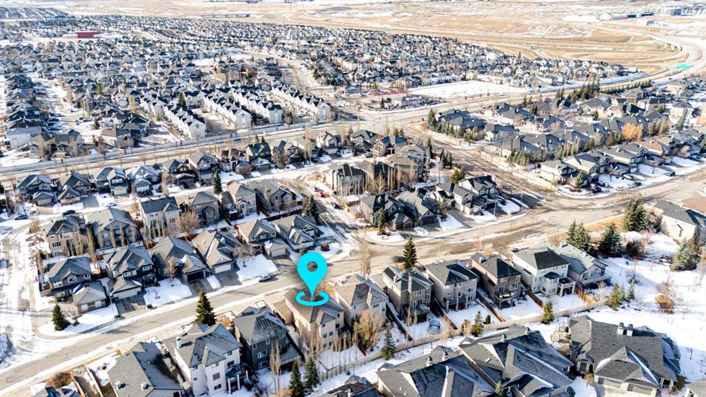 Set in Evercreek Bluffs within the sought-after community of Evergreen, this Shane Homes built two-storey walkout offers more than 3,800 sq. ft. of developed living space, a double attached garage, and a well-planned layout suited to daily living. The exterior combines stucco and stone with a welcoming front porch and Gemstone lighting, creating strong curb appeal. The main floor begins with a spacious entry and 9’ ceilings. Hardwood flooring extends through the living and family rooms, where a two sided gas fireplace creates a natural connection between the spaces. The open concept design continues into the dining area and kitchen, finished with tile flooring for durability and easy maintenance. The kitchen is equipped with stainless steel appliances, white cabinetry, quartz countertops, a corner pantry, an island with seating, and ample storage and workspace. The dining area provides direct access to a maintenance free balcony complete with a gas line for BBQ use. A main floor office with French doors offers a quiet workspace, while a two piece powder room and a rear laundry area off the garage add convenience. Upstairs features a large, sun filled bonus room. Double doors lead into the primary suite, which includes a walk-in closet and a well appointed ensuite with dual sinks, a soaker tub, and an oversized shower. Two additional bedrooms each include their own walk in closet and share a four piece bathroom. The fully developed walkout basement includes 9’ ceilings and a generous recreation space. A dedicated media area with built in shelving and a gas fireplace adds comfort and flexibility. The lower level also includes a bedroom with a walk-in closet and ensuite access to a three piece bathroom, which can also be accessed from the rec room. Additional storage is available throughout. Notable upgrades and features include central vacuum, a new hot water tank in 2020, triple pane windows installed in 2024 with warranty, and recent appliance updates including washer and dryer (2024), fridge (2023), and stove (2025). The garage is finished with built in cabinetry and overhead storage. The backyard is fully fenced and professionally landscaped, featuring a covered patio, mature trees, established shrubs, a large lawn area, and underground irrigation. The location offers exceptional access to amenities and lifestyle conveniences. It is steps from the pathways of Fish Creek Provincial Park and close to a nearby playground, with schools including Dr. Freda Miller School, Evergreen School, and Marshall Springs School all within walking distance. Everyday shopping is nearby at The Shops at Buffalo Run including Costco, while major routes are easily accessible via Stoney Trail. Transit options include a short drive to the Fish Creek LRT Station, supporting quick access to downtown. Recreation destinations such as Spruce Meadows and the Rocky Mountains are also within easy reach. Check out the floor plans & 3D Tour for a closer look!