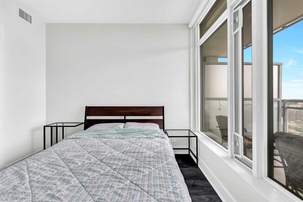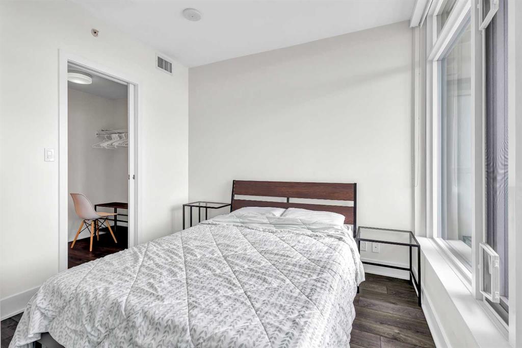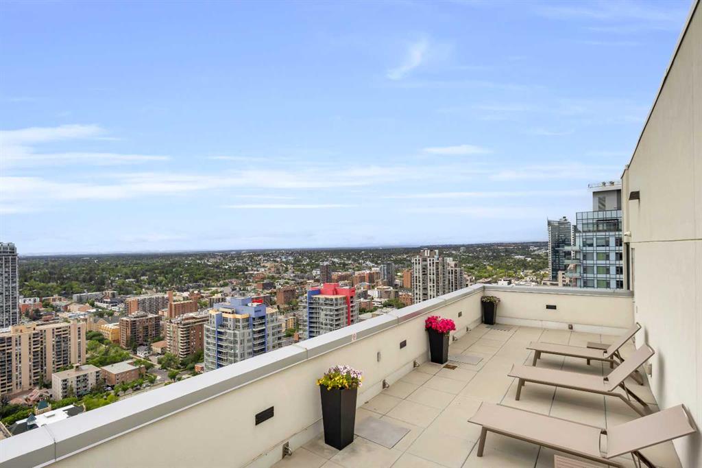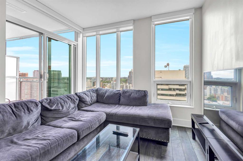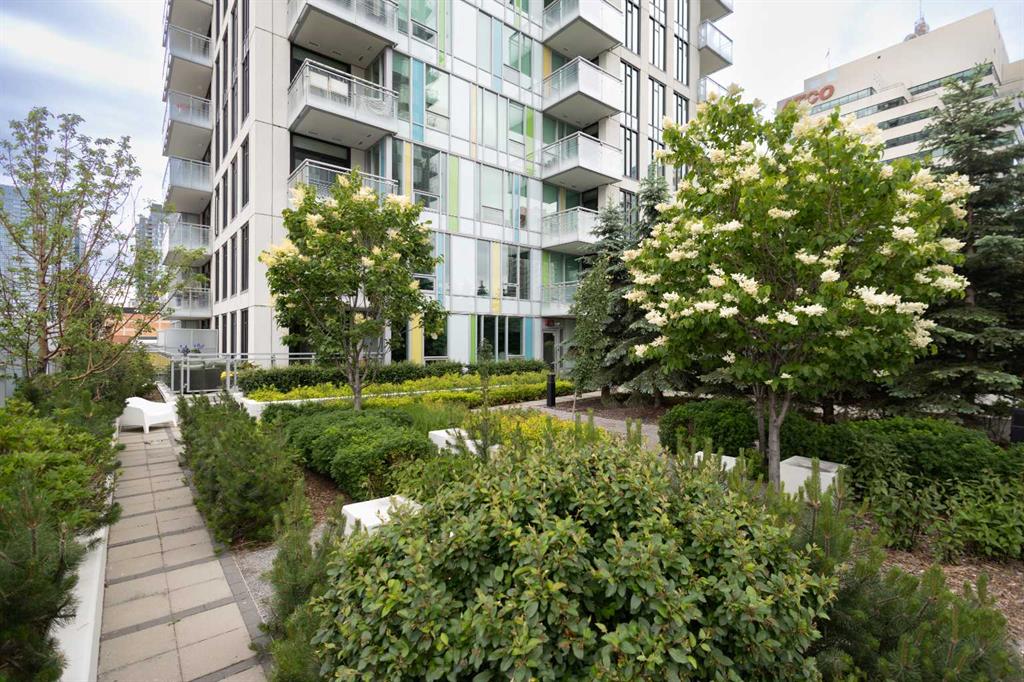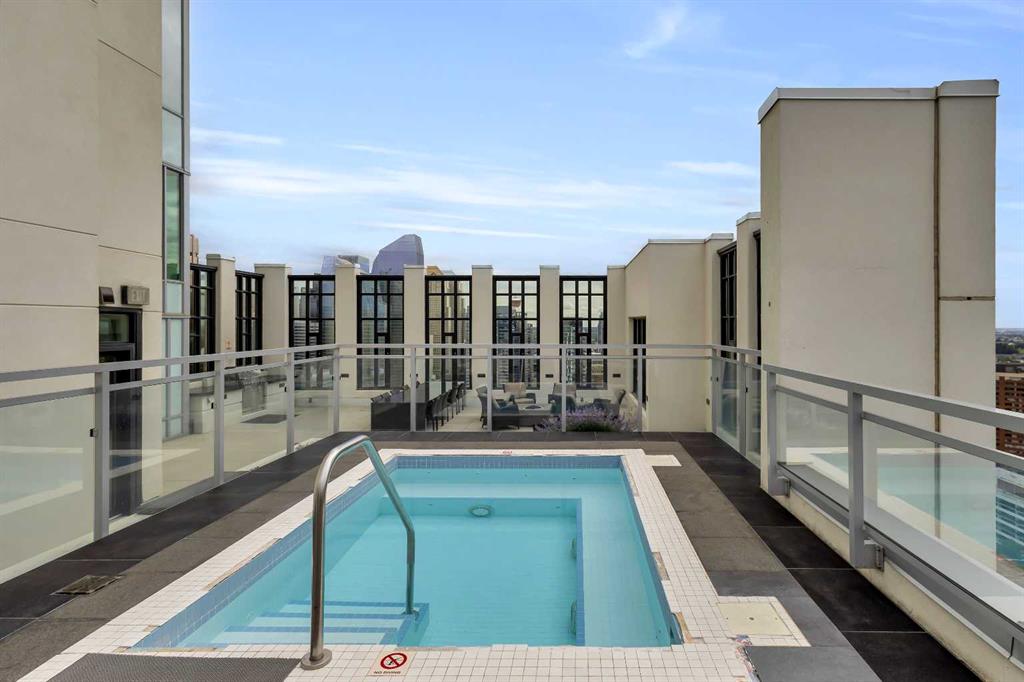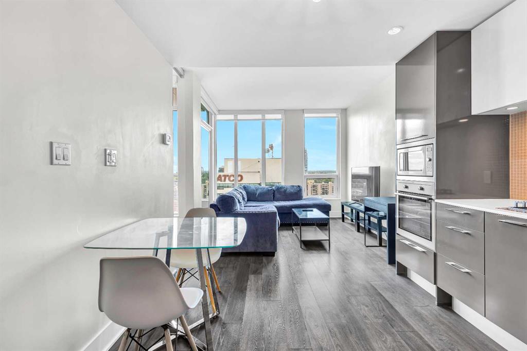 Welcome to elevated urban living in the heart of downtown Calgary. This modern 1-bedroom unit is located on the 21st floor of the Mark on 10th building, offering stunning south-facing views, 9-foot ceilings, and floor-to-ceiling windows for abundant natural light. The open-concept layout includes wide plank flooring, full-height Nobilia cabinetry, quartz countertops, gas cooktop, Liebherr built-in appliances, and a pull-out spray Kohler faucet. The unit comes with a titled heated underground parking stall and a separate out-of-suite storage locker. The Mark on 10th offers premium amenities including a rooftop hot tub, patio with BBQ and firepit, gym, steam room, sauna, owners' lounge, garden terrace, secure bike storage, car share, and dog wash area. A perfect opportunity for professionals or investors seeking quality living in the Beltline.