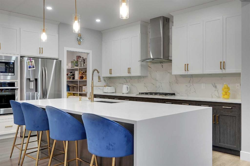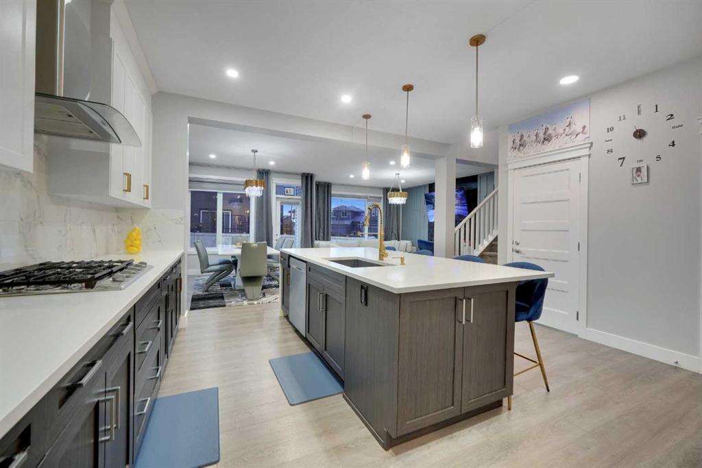 This stunning corner-lot home offers the perfect blend of style, space, and versatility. The bright open-concept main floor features a sleek fireplace with an accent wall, large windows that fill the home with natural light, and a gourmet kitchen with an expansive quart counter top island and walk-through pantry. A main-floor bedroom or office with a full bathroom adds flexibility for guests or multi-generational living. Upstairs you’ll find four spacious bedrooms, including a luxurious primary suite with a spa-inspired 5-piece ensuite, plus a second 5-piece bathroom and a bright bonus room. The fully legal 2-bedroom basement suite has its own separate entrance and includes a modern kitchen with stainless steel appliances, ample dining space, a bright living area with a custom accent wall, and generously sized bedrooms perfect for rental income or extended family.