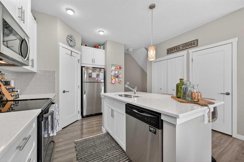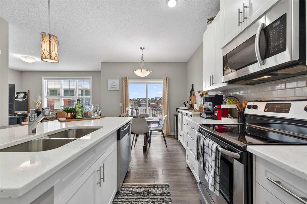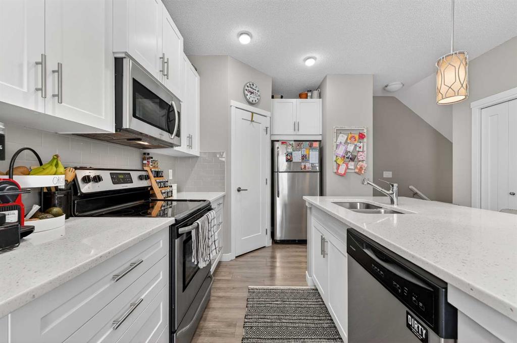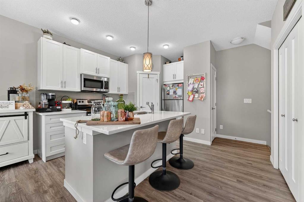 Welcome to this beautifully maintained 3-level townhome in the highly desirable community of Nolan Hill! Offering 1,194 sq ft of bright, functional living space, this home features two primary bedrooms, each with its own private ensuite, making it ideal for roommates, guests, or small families. The open and inviting main floor is filled with natural light and offers a well-designed layout that’s perfect for both everyday living and entertaining. The second floor also features a convenient half bathroom, ideal for guests and everyday functionality. Step outside to your south-facing deck with a built-in BBQ gas line—the perfect spot to relax and enjoy warm summer evenings. One of the bedrooms also features a Juliet-style balcony, offering fresh air and a nice open feel. Parking is a breeze with a single attached garage plus room to park a second vehicle in the driveway, giving you two parking spots, along with plenty of visitor parking nearby for guests. Additional highlights include low condo fees for easy, low-maintenance living and a new hot water tank installed this year, providing added peace of mind. The location is fantastic with quick access to major roadways and close proximity to shopping and everyday amenities at Beacon Hill Centre and Sage Hill Crossing, plus restaurants, grocery stores, and services just minutes away. Whether you're a first-time buyer, investor, or looking for low-maintenance living, this move-in ready home offers the perfect blend of comfort, convenience, and lifestyle. A wonderful place to call home!