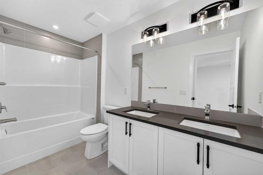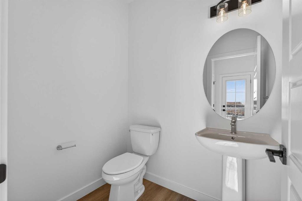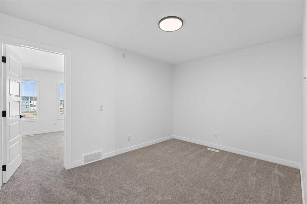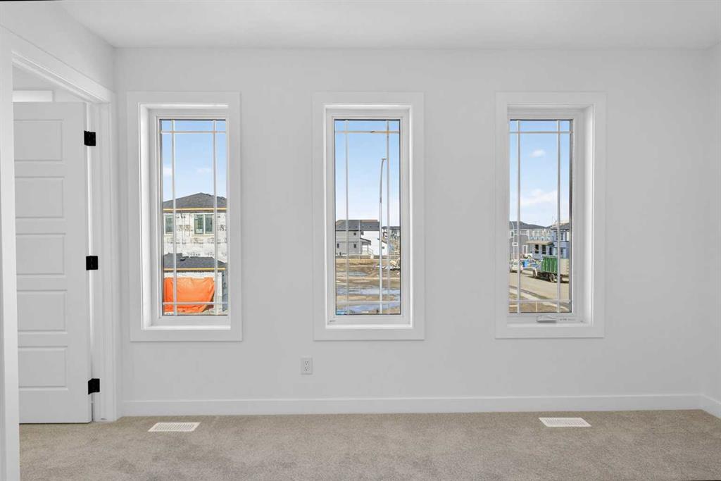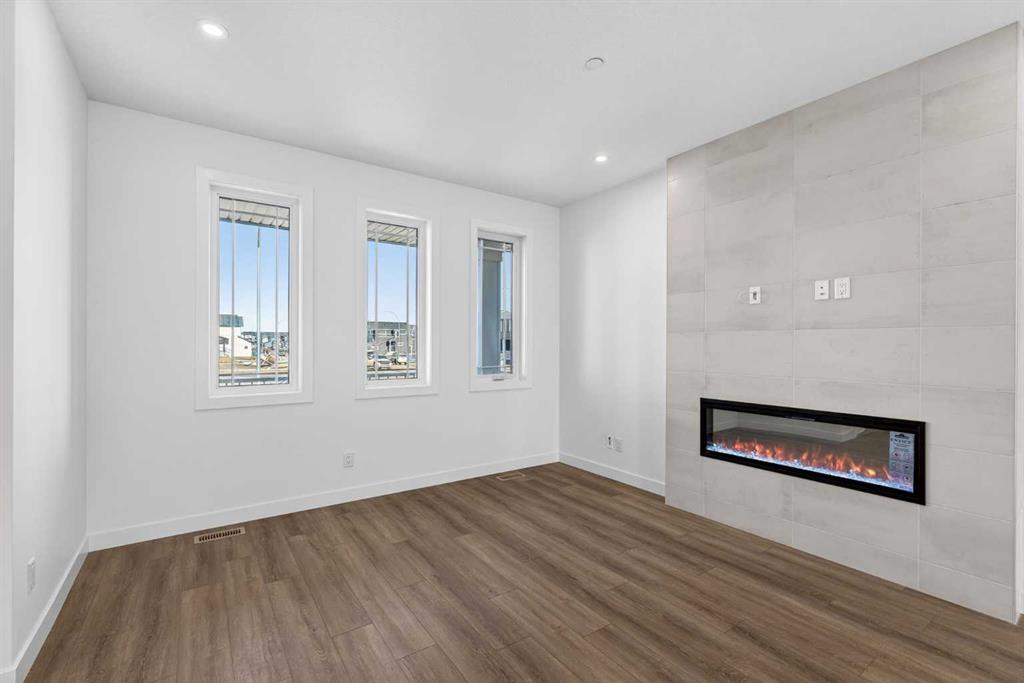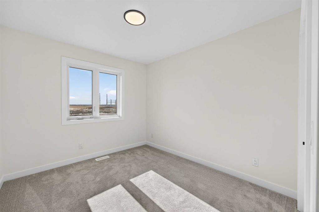 Introducing the Newport III by Broadview Homes, a brand new home in the southeast Calgary community of Hotchkiss. This thoughtfully designed home features an open concept main floor, a central upper loft, and a separate side entrance with basement rough-ins already in place for future development, offering flexibility as your living needs evolve. A large covered front porch creates a welcoming first impression and provides a comfortable outdoor space to enjoy the front of the home, while a rear deck extends the living space outdoors. The main level is designed for both functionality and everyday comfort. The kitchen is positioned at the rear of the home and features a central island, generous cabinetry, and a full stainless steel appliance package including a gas range, fridge, dishwasher, built in microwave, and hood fan. The kitchen flows seamlessly into the dining area and great room, creating a bright and connected living space ideal for entertaining or daily living. The great room is anchored by an electric fireplace with floor to ceiling tile, creating a striking focal point and adding warmth to the main living area, while the adjacent dining area offers easy access to the rear deck. A convenient powder room completes the main floor. Upstairs, a centrally located loft provides additional living space that can function as a second lounge, home office, or study area. Two secondary bedrooms, a full bathroom, and a dedicated upper floor laundry area add everyday convenience. The primary suite offers a walk in closet and a private ensuite with dual vanities, creating a comfortable and functional retreat. The basement is accessed directly from the side entrance and includes rough-ins already installed for future development, offering excellent potential to expand the living space over time. Located in the growing community of Hotchkiss, residents enjoy access to scenic pathways, expansive green space, and a planned 30 acre wetland that anchors the neighbourhood. With convenient access to Stoney Trail, residents are minutes from Seton’s shopping district, the YMCA, South Health Campus, and a wide range of amenities. This Newport III offers modern design, flexible living space, and strong long term value in one of southeast Calgary’s newest master planned communities.
