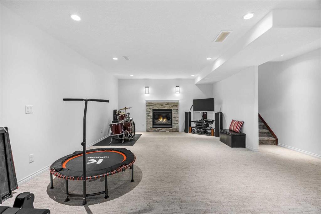 Open House March 14, 2-4pm. Welcome to Air Ranch, one of Okotoks’ most desirable communities. This beautifully maintained two-storey home offers nearly 2,700 sq. ft. above grade, four bedrooms, and a rare heated quad garage with a tandem third bay. (With approximately 826 sq. ft. of garage space, car enthusiasts and hobbyists will appreciate the tandem bay, complete with drains for washing, a sink, insulated doors, a separate ventilation fan for working on cars, and wiring for 220V.) Situated on a quiet street backing directly onto green space, pathways, and a playground, the location is ideal for families who value both privacy and connection to the outdoors. Inside, the main floor features a bright open layout with high ceilings and updated new vinyl flooring throughout. The kitchen is truly the heart of the home with two-tone cabinetry, granite countertops, updated backsplash, a raised eating bar, and a walkthrough pantry complete with built-ins and a coffee bar — an excellent setup for both everyday living and entertaining. The dining area and living room with gas fireplace overlook the backyard and open green space beyond. A main floor office or den, mudroom with great storage, and powder room complete the level. Upstairs you’ll find a spacious bonus room with vaulted ceilings, convenient upper laundry, and three generous bedrooms including the primary suite featuring heated floors in the ensuite, dual sinks, quartz countertops, a soaker tub, and a large walk-in closet. The main upper bathroom also features quartz countertops and an extended vanity with plenty of storage. The fully finished basement adds even more living space with a large recreation room with a second fireplace, fourth bedroom, and full bathroom, making it perfect for movie nights, guests, or a home gym. During the basement development, extra spray foam insulation was added for improved comfort and efficiency. Recent updates provide additional peace of mind, including new paint throughout the walls and baseboards (2025), new carpet (2025), a new refrigerator (2025), and a new hot water tank (2025). Additional features include central air conditioning, wiring for a hot tub under the deck, a dual-zone furnace, water softener, reverse osmosis to the fridge, and excellent storage throughout. Backing onto parks and pathways and located close to schools with quick access to Calgary, this home offers space, functionality, and a fantastic location in one of Okotoks’ most sought-after neighbourhoods.