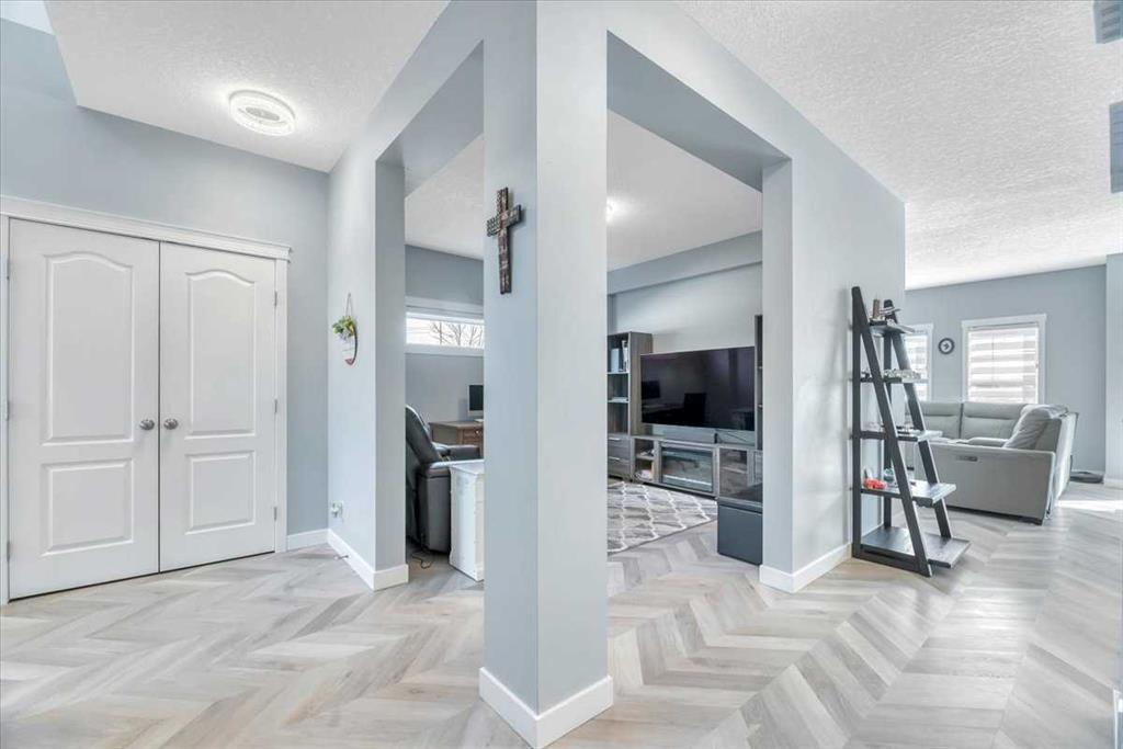 This impressive two-storey offers more than 3,300 sq ft of finished living space and sits on a large pie-shaped lot with a triple attached garage. Pride of ownership is evident throughout. The main floor is bright and open, with large windows bringing in plenty of natural light. The kitchen flows easily into the living room, creating a great space for everyday living or entertaining. It features new appliances, stone countertops, white cabinetry, plenty of storage, and while the living area is anchored by a sleek fireplace. New flooring including carpet. Upstairs you’ll find four bedrooms, including an amazing spacious primary suite with a walk-in closet and a five-piece spa like ensuite. The fully finished basement adds even more living space with a large recreation room and a fifth bedroom, perfect for guests, teens, or a home office. Outside, the private pie-shaped backyard offers lots of room for kids, pets, and outdoor entertaining, plus extra parking for vehicles, trailers, or toys. Located in The Ranch, this home is close to parks, playgrounds, walking paths, and shopping, making it a great choice for families looking for space and convenience. Basement kitchenette will be complete. This home is MORE than move in ready- it is TURN KEY! Amazing Strathmore location perfect for access to schools, shopping, downtown, parks pathways and access to the number one highway!