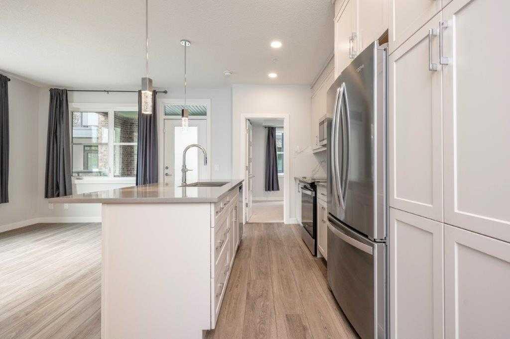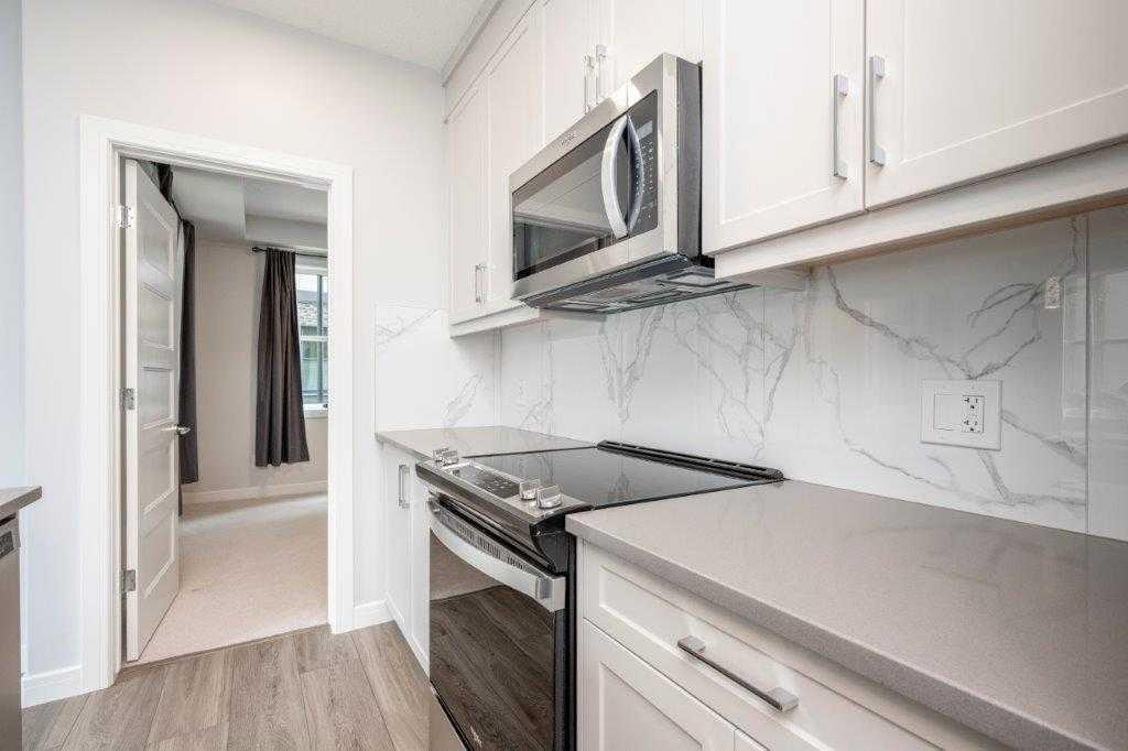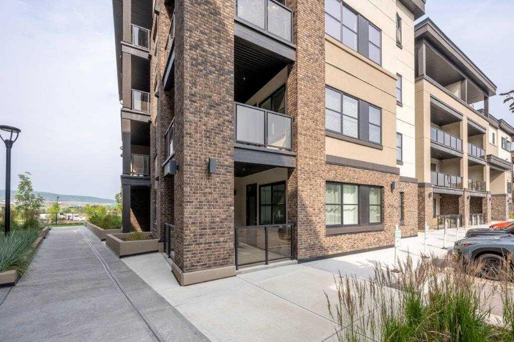 Welcome to Greenbriar, a vibrant and growing community in northwest Calgary. This south-facing main-floor condo offers 893 sq. ft. of well-designed living space with 2 bedrooms and 2 full bathrooms, plus a private terrace with a separate exterior entrance. The kitchen features quartz countertops, full-height cabinetry, upgraded stainless steel appliances, and a large island, ideal for everyday living and entertaining. The open-concept layout connects the kitchen, dining, and living areas, creating a bright and functional space. The bedrooms are thoughtfully positioned on opposite sides of the unit for added privacy. The primary bedroom includes a walk-through closet and a private ensuite with a walk-in shower and subway tile finish. Luxury vinyl plank flooring runs throughout the home for a modern, low-maintenance finish. Enjoy the sunny south-facing terrace, complete with a gas line for a BBQ and convenient direct access from outside. Additional features include in-suite laundry and titled parking. Ideally located just steps from the Calgary Farmers’ Market, shopping, restaurants, transit, parks, pathways, fitness facilities, and outdoor skating rinks. Bowness Park is minutes away, downtown Calgary is approximately an 18-minute drive, and Banff is just over an hour away, making weekend mountain trips easy. A great opportunity to own a move-in-ready condo in a prime location with excellent amenities nearby.