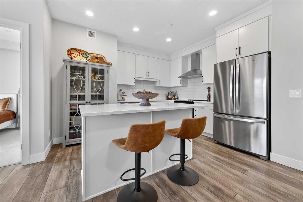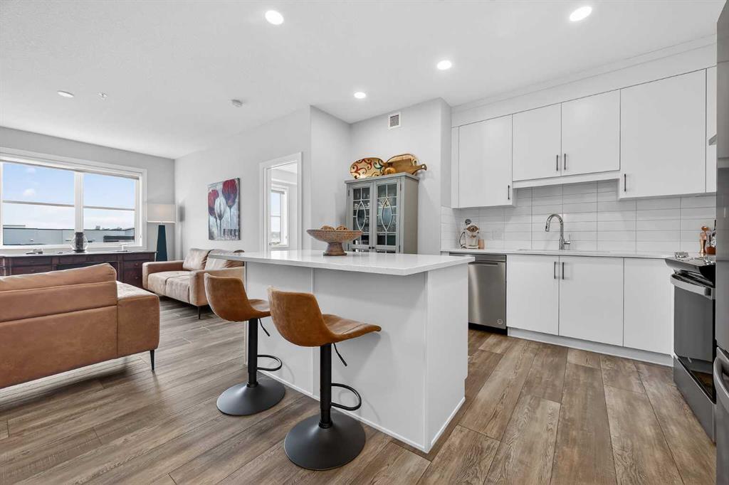 Like new! Immaculately kept 2-bedroom unit in Springbank Hill. Situated with a sunny SW exposure with views over the rooftops of the ravine & the Rocky Mountains. 85th & Park is full of upscale finishings and extras that are not so common in apartment developments. Sprawling modern open plan with room for the largest furniture sets & flooded with natural light. Chef's kitchen with quartz island & perimeter countertops, deluxe stainless steel appliance package, full height cabinetry, & timeless subway tile backsplash. 2 very generously sized bedrooms in a double-primary configuration. Both bedrooms enjoy full ensuite bathrooms & large walk-though closets. Spectacular storage with 2 storage lockers; one located on the same floor as the unit, and another above the parking stall. Fantastic for tires, seasonal equipment, and more! Just steps to all the many amenities of Aspen Landing and minutes to transit, shopping, community rec centers, West Springs, & all amenities. A premium location in Calgary's West side at a very affordable price point offering exception value!
