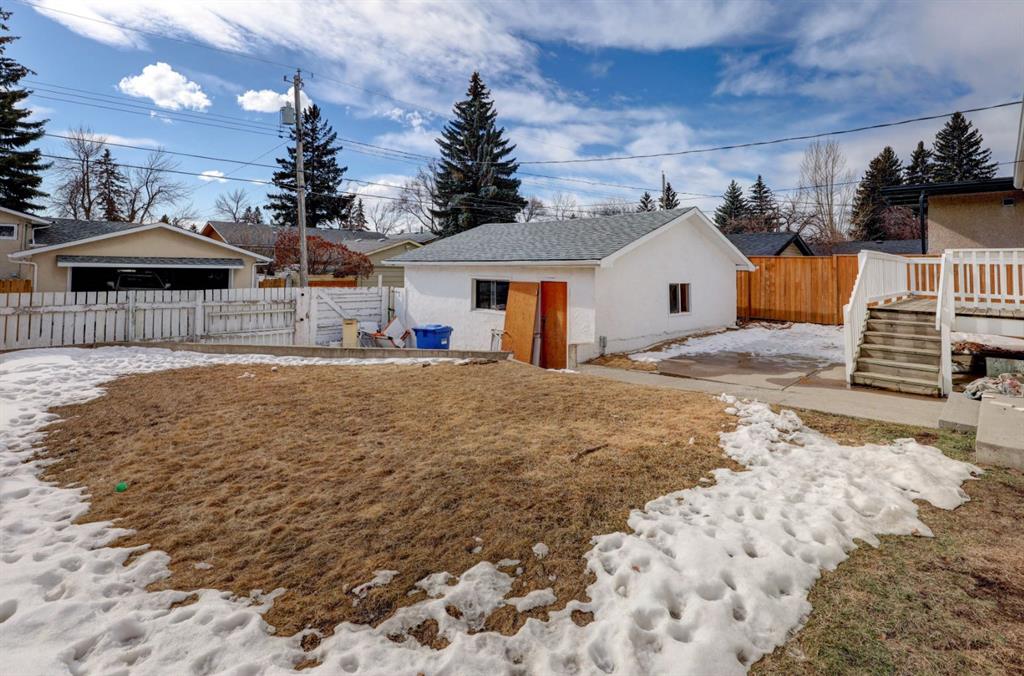 Located on a quiet cul-de-sac, this welcoming 1,183 sqft. bungalow offers comfortable living with a bright layout, updated laminate flooring, and a massive lot providing excellent outdoor space. Step inside to a bright and inviting living room highlighted by expansive front windows that fill the space with natural light and create a warm atmosphere. The kitchen is thoughtfully designed with an abundance of cupboards, generous counter space, and a new oven. Its layout flows beautifully for hosting, with windowed double doors leading directly to a custom-built deck that creates a seamless indoor-outdoor connection. The deck is gated and connects to a gently sloped accessibility ramp, making it a great option for those seeking a mobility-friendly home, while also providing convenient access to the front of the property. The main level features three comfortable bedrooms, a 4-pc main bathroom, and a 2-pc ensuite. Freshly updated paint throughout the home adds a clean, refreshed feel and provides an inviting backdrop for your personal style. Downstairs, the basement includes a dedicated laundry area with washer and dryer, a partially developed room, and extensive storage space. The basement offers excellent potential for a future basement suite (subject to municipal approval) as a mortgage helper, or a development for your own enjoyment. Outside, the backyard includes a large double detached garage and a generous yard that offers plenty of room to relax, garden, or enjoy time outdoors. The setting provides a pleasant space to unwind while still having room for practical use. With convenient access to nearby shopping, amenities, and major routes for easy travel throughout the city, this is a rare opportunity to settle into a comfortable, well-located home with thoughtful features and future potential.