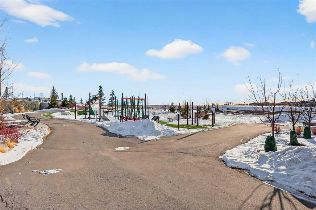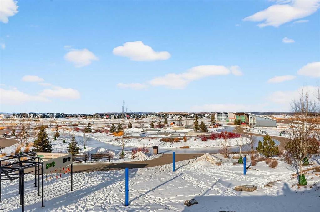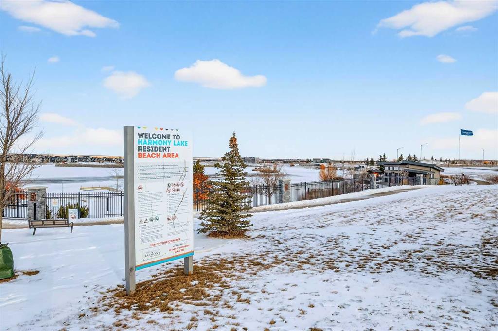 Experience the height of sophisticated living in this highly coveted luxury townhome, where a generous floor plan meets modern comfort and refined finishes. Proudly presented by StreetSide – this thoughtfully designed unit features 3 bedrooms, 2.5 bathrooms, and a front attached double car garage. The heart of the home is a spacious kitchen with a large central island, quartz countertops, modern slab style cabinets and drawers with soft close mechanisms, under cabinet lighting, and stainless-steel appliances. Luxury vinyl plank flooring throughout the main floor with tile options at the front and rear entrance, powder room, and laundry room. Plush carpet on the stairs, upper hallway, and bedrooms. The primary ensuite is a private sanctuary, complete with tile flooring, double sinks, a freestanding soaker tub, and an oversized tile-and-glass shower delivering spa-inspired comfort at home. The unfinished basement with roughed-in plumbing provides future potential for additional living space tailored to your needs. Professional landscaping and fencing complete your new home. Ideally located in the award-winning community of Harmony, residents enjoy Mickelson National Golf Course, private lake amenities, scenic walking and biking trails, and a wellness-focused lifestyle—just a shorty drive from Calgary city minutes and 45 minutes from the Rocky Mountains, where nature and convenience come together effortlessly.