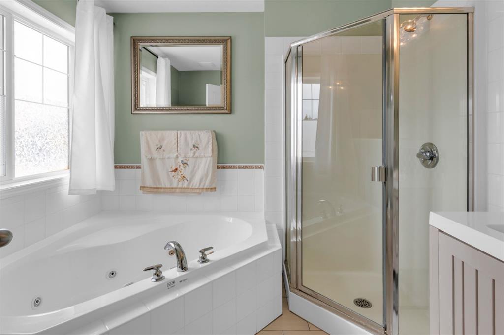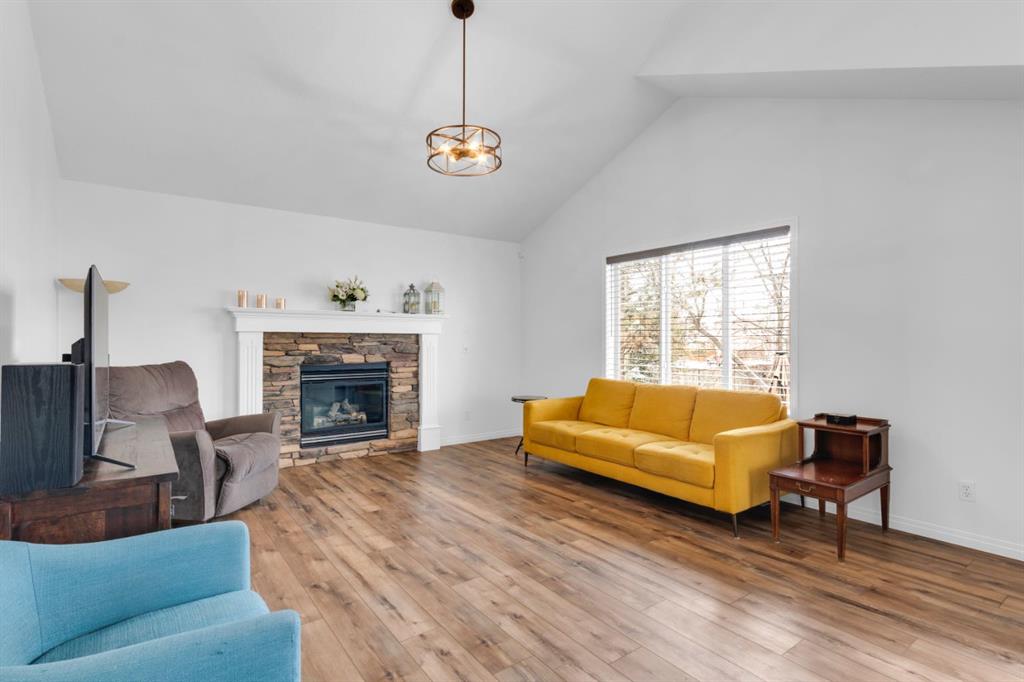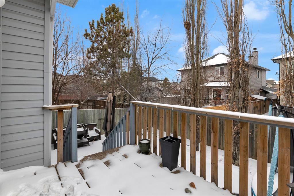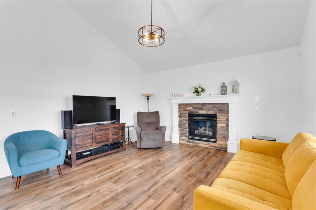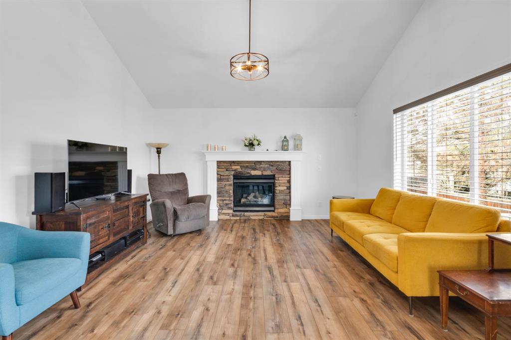 Welcome to this inviting 1.5 story home in the highly desirable community of West Springs! This beautiful family home offers three spacious bedrooms, two full bathrooms and a double attached garage. The main floor showcases new luxury vinyl plank flooring , a fresh coat of paint and a bright open layout filled with natural light from oversized windows, a skylight and vaulted ceilings. The spacious kitchen has a new dishwasher, abundant cabinetry, a corner pantry and generous prep space with both a centre island and peninsula, making it perfect for cooking and entertaining. The dining area and inviting living room with a cozy gas fireplace overlooks the backyard, ideal in a family home for keeping an eye on little ones. Step outside to a low maintenance yard featuring an upper rear deck with bbq gas line, a lower stone patio and a rock garden in the front. Two large bedrooms, a 4pc bathroom and convenient main floor laundry with a new dryer complete this level. The primary bedroom occupies the entire upper level creating a private retreat with south facing windows flooding the space with light, along with a walk in closet and 4pc ensuite that offers comfort and privacy. The unfinished lower level is awaiting your personal touch and features large windows, tall ceilings and a rough-in for a future bathroom plus it has a new furnace. Located just 20 minutes from downtown, West Springs offers excellent schools, top restaurants, cafes, fitness facilities and boutique shopping all within walking distance from your front door.