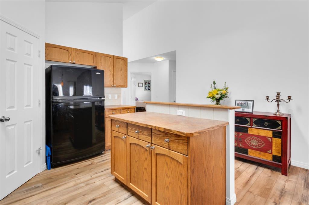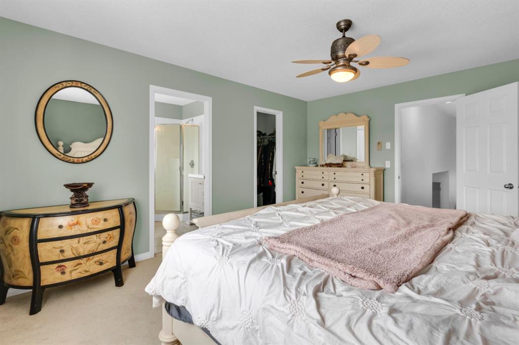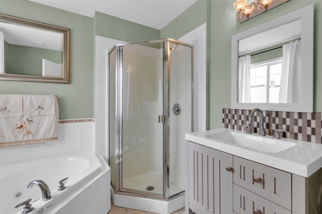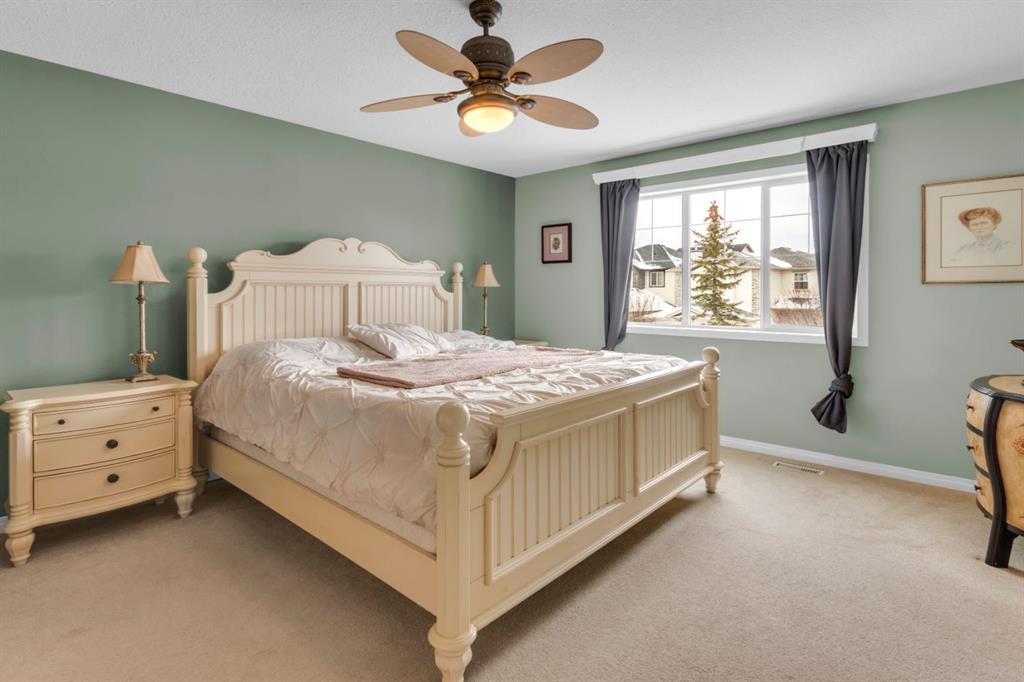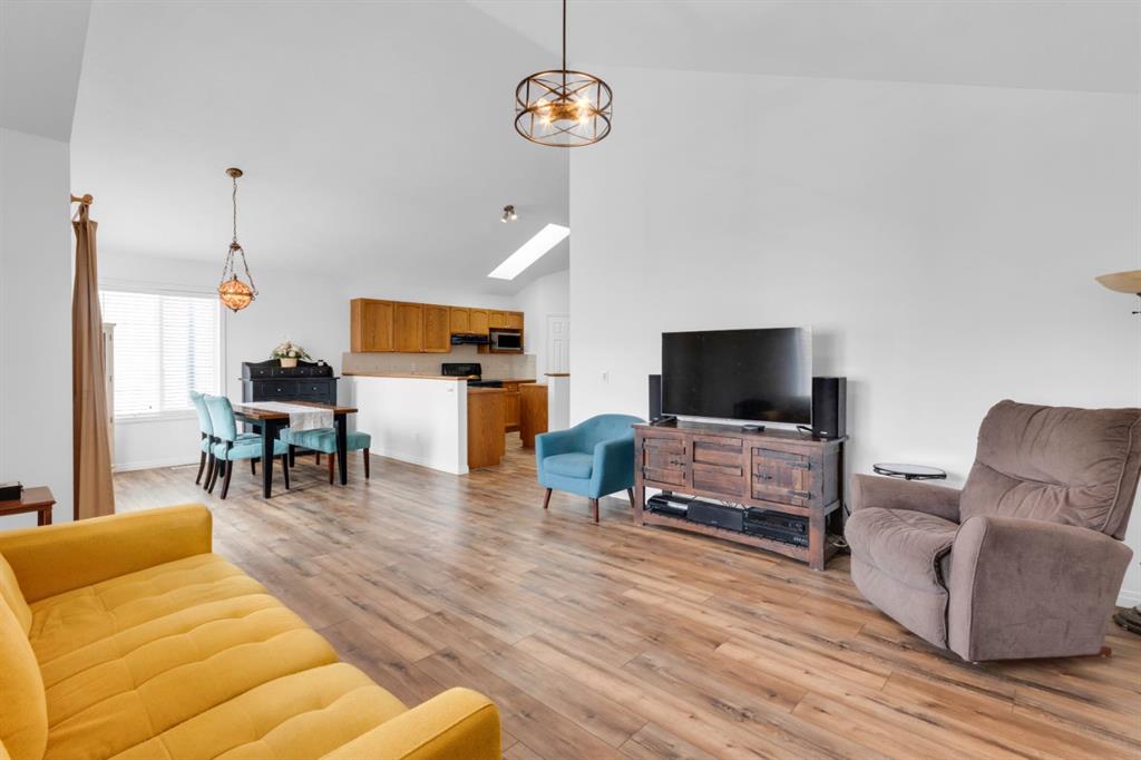 Welcome to this inviting 1.5 story home in the highly desirable community of West Springs! This beautiful family home offers three spacious bedrooms, two full bathrooms and a double attached garage. The main floor showcases new luxury vinyl plank flooring , a fresh coat of paint and a bright open layout filled with natural light from oversized windows, a skylight and vaulted ceilings. The spacious kitchen has a new dishwasher, abundant cabinetry, a corner pantry and generous prep space with both a centre island and peninsula, making it perfect for cooking and entertaining. The dining area and inviting living room with a cozy gas fireplace overlooks the backyard, ideal in a family home for keeping an eye on little ones. Step outside to a low maintenance yard featuring an upper rear deck with bbq gas line, a lower stone patio and a rock garden in the front. Two large bedrooms, a 4pc bathroom and convenient main floor laundry with a new dryer complete this level. The primary bedroom occupies the entire upper level creating a private retreat with south facing windows flooding the space with light, along with a walk in closet and 4pc ensuite that offers comfort and privacy. The unfinished lower level is awaiting your personal touch and features large windows, tall ceilings and a rough-in for a future bathroom plus it has a new furnace. Located just 20 minutes from downtown, West Springs offers excellent schools, top restaurants, cafes, fitness facilities and boutique shopping all within walking distance from your front door.