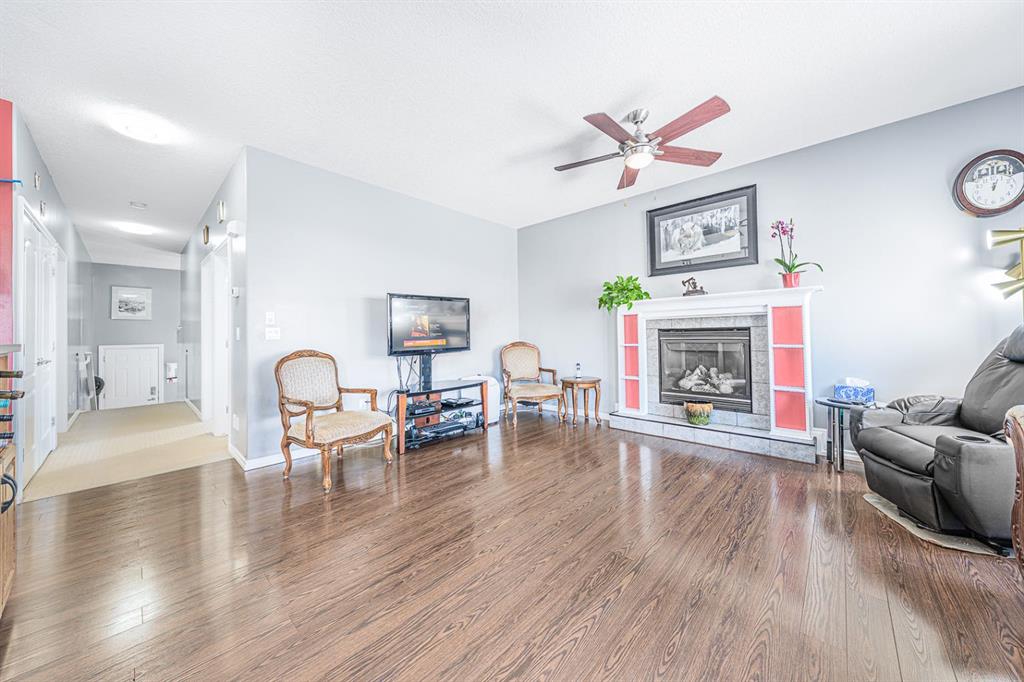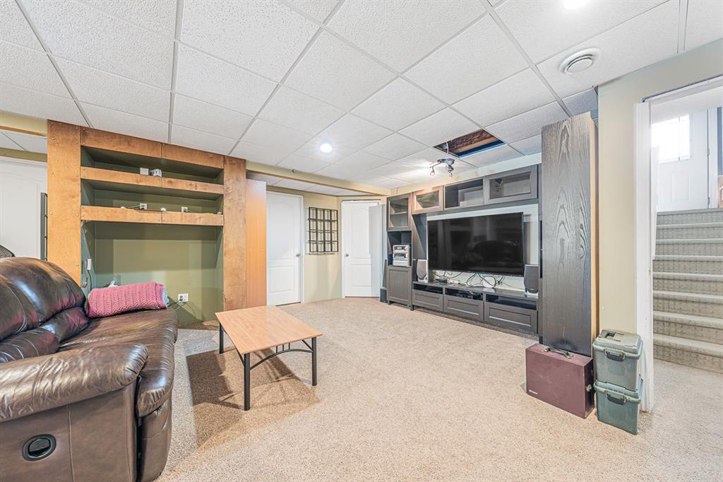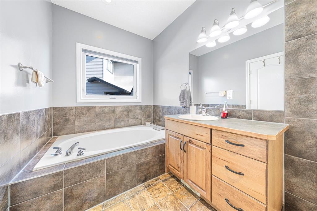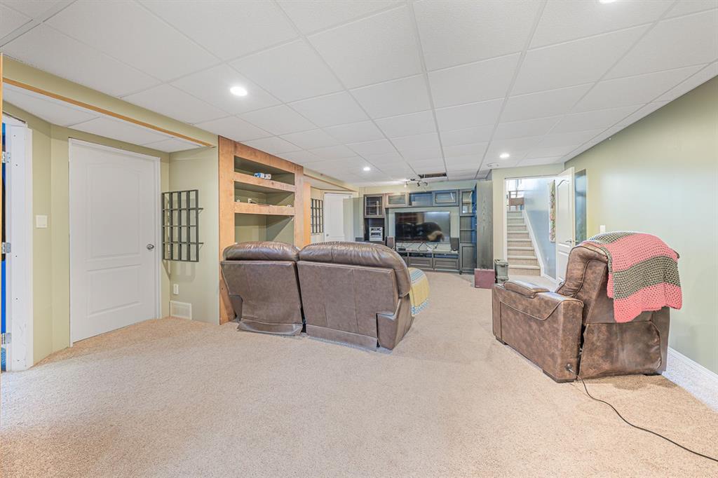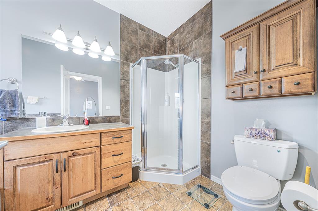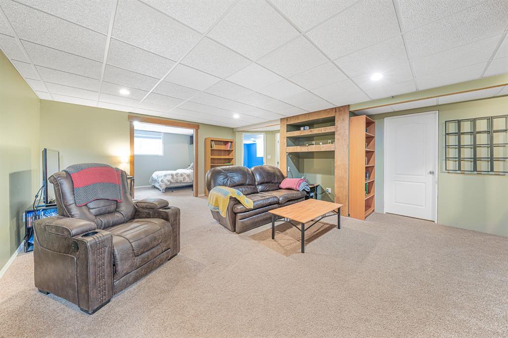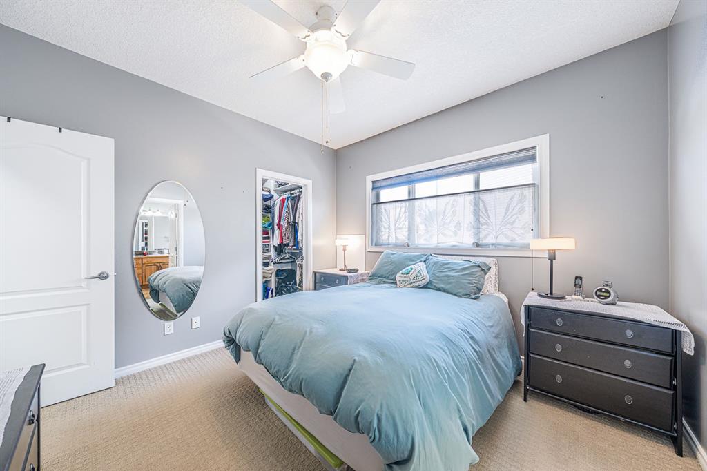 Situated on a pie lot in the lake community of Crystal Shores, this home offers a total of 3 bedrooms, 2 full bathrooms and nearly 2000 sq ft of developed living area. The main level features a great room with easy to care for laminate flooring and a warm, cozy fireplace. The eat-in kitchen boasts a corner pantry, full height tiled backsplash, black appliances and island with eating ledge, pendant lighting & built-in wine rack. Access to the deck is found through the sliding doors off the breakfast nook. Completing this level are 2 bedrooms including the master retreat with walk-in closet and convenient 4 pc ensuite bath. Basement development includes an incredibly spacious rec room, office niche, 3rd bedroom and storage area. The back yard offers a park like setting with tastefully landscaped flower beds, bushes and mature trees. Located near schools, within walking distance to the Crystal Ridge Golf Club and with lake access privileges, this home is ideal for a growing family.