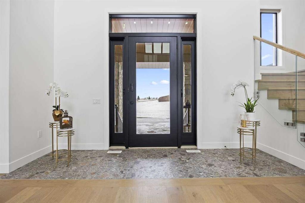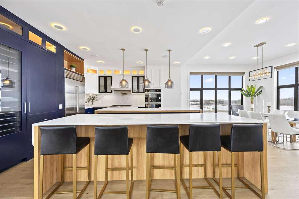 Welcome to an extraordinary blend of modern elegance and countryside charm. Built in 2023, this stunning 6-bedroom, 5.5-bathroom estate offers over 7,200 sq. ft. of meticulously designed living space, nestled on a picturesque 5-acre property. More than just a home, it’s a peaceful retreat surrounded by nature, yet conveniently close to Calgary’s South Campus hospital, top-rated schools, and urban amenities, offering the perfect balance of serene country living and city convenience. As you enter through natural flat stone pillars, a grand entryway welcomes you into warm and expansive living areas set against the breathtaking backdrop of the Rocky Mountains. The living room features a towering stone fireplace that serves as a centerpiece, while a glass-surround walkway bathes the space in natural light. Telescoping glass doors seamlessly connect indoor and outdoor spaces, making it ideal for entertaining or relaxing with loved ones. The chef’s kitchen is the heart of the home, featuring double islands perfect for hosting, high-end appliances including a combination steam oven, and two butler’s pantries. These pantries provide ample storage and include access to a hidden workspace and a single garage, adding both functionality and convenience to the kitchen’s design. The main-floor primary suite is a true sanctuary, boasting floor-to-ceiling west-facing windows that frame stunning views. The spa-inspired en-suite includes luxurious stone-accented walls, an oversized soaker tub, and a walk-in shower, while the custom-designed closet caters to a modern lifestyle with ample space and organization. Upstairs, three spacious bedrooms, each with walk-in closets and private bathrooms, provide comfort and privacy for family or guests. A striking glass walkway connects a custom home office and a cozy family room, creating a unique and inviting upper-level retreat. The lower level is designed for both relaxation and activity. Highlights include a home gym with a pro-height basketball hoop, a luxurious steam shower for post-workout relaxation, an additional bedroom, and a versatile flex room that opens directly to the backyard. The outdoor space offers endless possibilities. The expansive backyard is a blank canvas awaiting your vision—whether it’s a vibrant garden, a playground, or even space for animals. The property’s 5-acre expanse ensures privacy and room to customize. Behind the beauty of this estate lies impeccable functionality. Two mechanical rooms house high-end systems, including advanced A/C, on-demand hot water, and multiple furnaces and boilers, ensuring comfort year-round. Premium finishes, custom flooring, and thoughtful details elevate the home’s design. This property is more than a residence—it’s a lifestyle. Whether hosting grand gatherings, seeking a tranquil retreat, or making cherished family memories, this estate delivers it all. Don’t miss your opportunity to own this incredible count