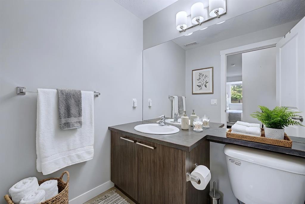Affordable townhouse living in the heart of Chestermere with extremely LOW CONDO FEES! Welcome to this well-maintained 2-bedroom, 1-bathroom townhouse located in the desirable Chestermere Station complex. This open-concept home features a bright living room, dining area, and a functional kitchen with ample cabinet and counter space, ideal for first-time home buyers, downsizers, or investors. Both bedrooms are spacious, and the unit includes a 4-piece bathroom and convenient IN-SUITE LAUNDRY. An assigned PARKING stall is included, and the property is part of a well-managed condominium complex, offering low-maintenance living and affordable ownership. Located in the heart of the city, this home is close to shopping, restaurants, grocery stores, schools, parks, walking paths, and public amenities. Enjoy being just minutes from Chestermere Lake, offering year-round recreation including boating, paddleboarding, and lakeside walking paths, while still having quick and easy access to Calgary for commuters. Currently tenant occupied, making this a TURN-KEY INVESTMENT PROPERTY with immediate RENTAL INCOME for investors with CONDO FEES UNDER $215.00/MONTH. A great opportunity to own an affordable stacked townhouse style apartment in a prime Chestermere location.