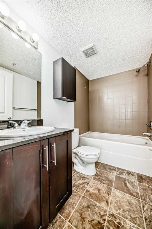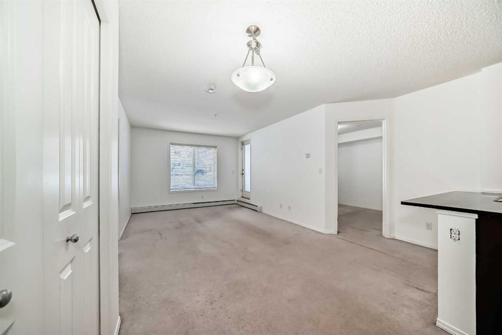Ground floor cozy 2 bedroom plus Den and 2 baths is nestled in the family-friendly neighborhood of Kincora. Situated right in the midst of all kinds of amenities - transit routes, shopping centers, schools, recreational facilities, walk and bike paths. This is urban living at its best!. Freshly painted, spacious entrance you are ushered into the open floor concept of living room and dining area. To the left of the entrance is good size Den and the laundry room. Then there is the 4pce bathroom and a good size bedroom. To the right as you enter is good size kitchen with plenty of cabinets and counter top space, also the primary/master bedroom complete with walk in closet and 4pce ensuite. The porch off the living room has good view of the complex and neighborhood for those summer days hang out. Condo fees cover both heat and water, offering additional convenience. With easy access to Stoney Trail, Shaganappi Trail, and Beddington Trail, you'll enjoy a hassle-free commute and excellent connectivity to everything you need.