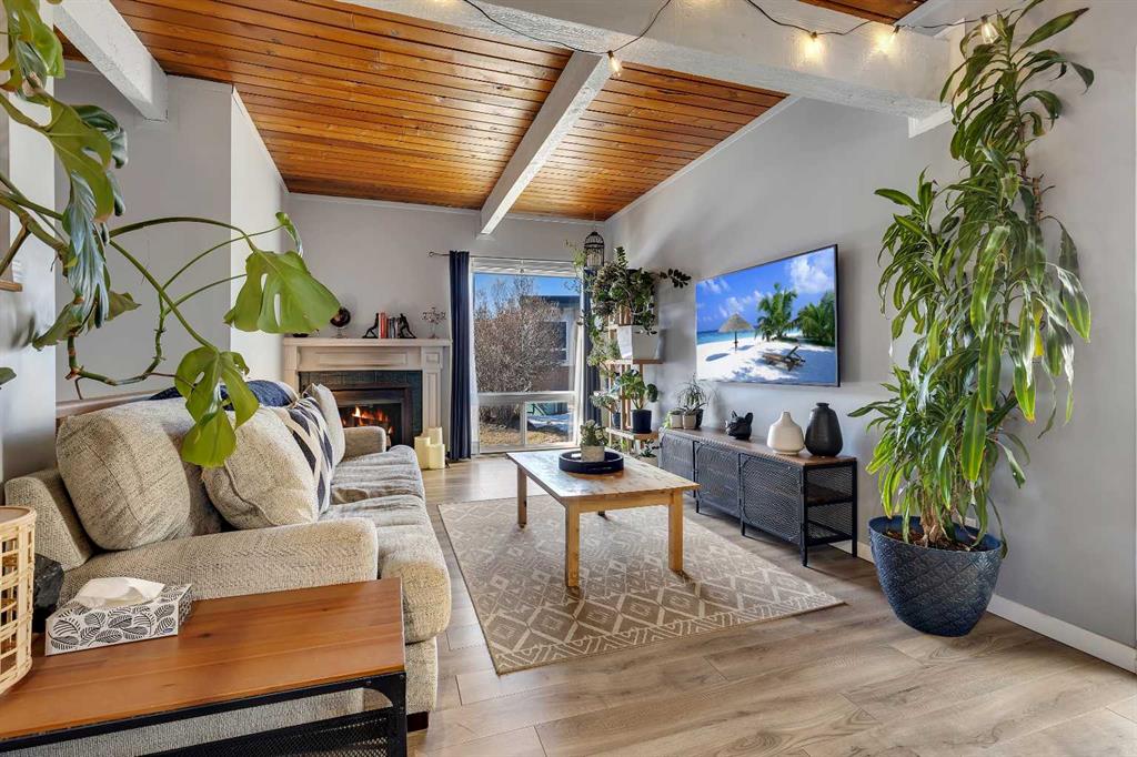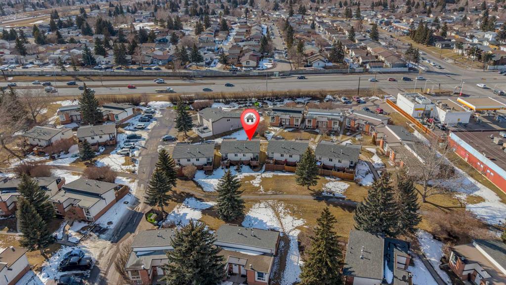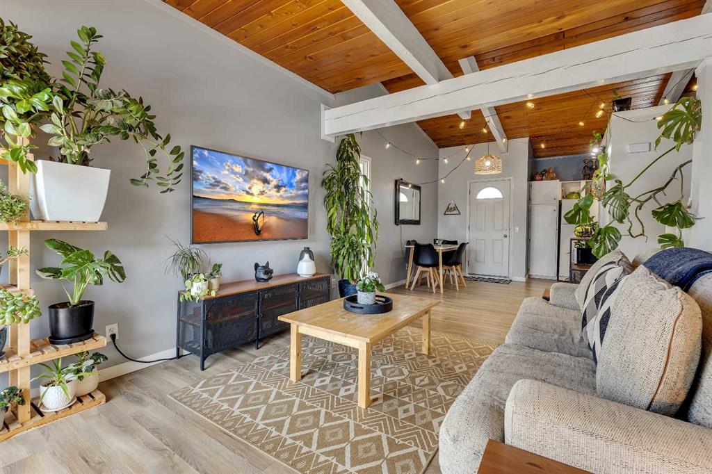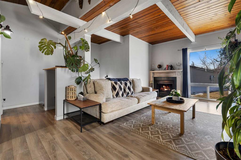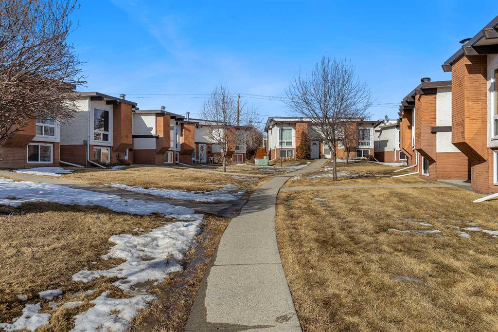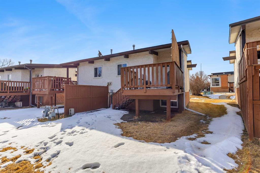 Welcome Home! This stunning half duplex bi level offers one of a kind living featuring: VAULTED CEILINGS WITH EXPOSED WOOD BEAMS | BACKS GREEN-SPACE | UPDATED | LOW CONDO FEES & more in an idyllic location in Calgary's 'PINERIDGE' - 10m to downtown, a complex surrounding by green spaces and walking paths, easy access to main roadways (16th/stoney/deer foot), amenity nearby, schools and so much more. Heading into the complex will give you a breathe of fresh air, with beautiful greenery, greenspaces, & walking paths welcoming you to your unit. Stepping inside, you'll immediately feel how open the place feels with vaulted ceilings w/ exposed wood beams throughout the main floor. The main floor layout has a very functional layout that makes the place feel very spacious, connecting the living and dining together along with vaulted ceilings and large windows making it give an open feel. Not only that, there is the cozy comfort of wood railings, and wood burning fireplace with mantel for the cooler days. Kitchen is tucked away to keep the place feeling neat, with sink overlooking the yard. Enjoy the warmer days off the east facing deck, that backs onto a green space! The main floor is complete with an updated full bathroom that has bath/shower combo, toilet, vanity. Lower level offers 2 bedrooms, utility room, laundry, storage space. The property has updates over the years like: paint, bathroom (tile), fixtures, hardware, furnace, and more. The best part is, the condo fees are very low at just over $300 a month, making this a very affordable option ! Likewise, condo has great condo management. Unit comes with 1 outdoor stall, along with the complex that has visitor parking. With so much to offer, this makes a great place to call home. Book your viewing today, before it's gone!