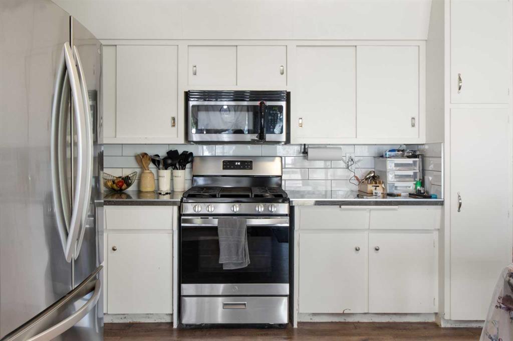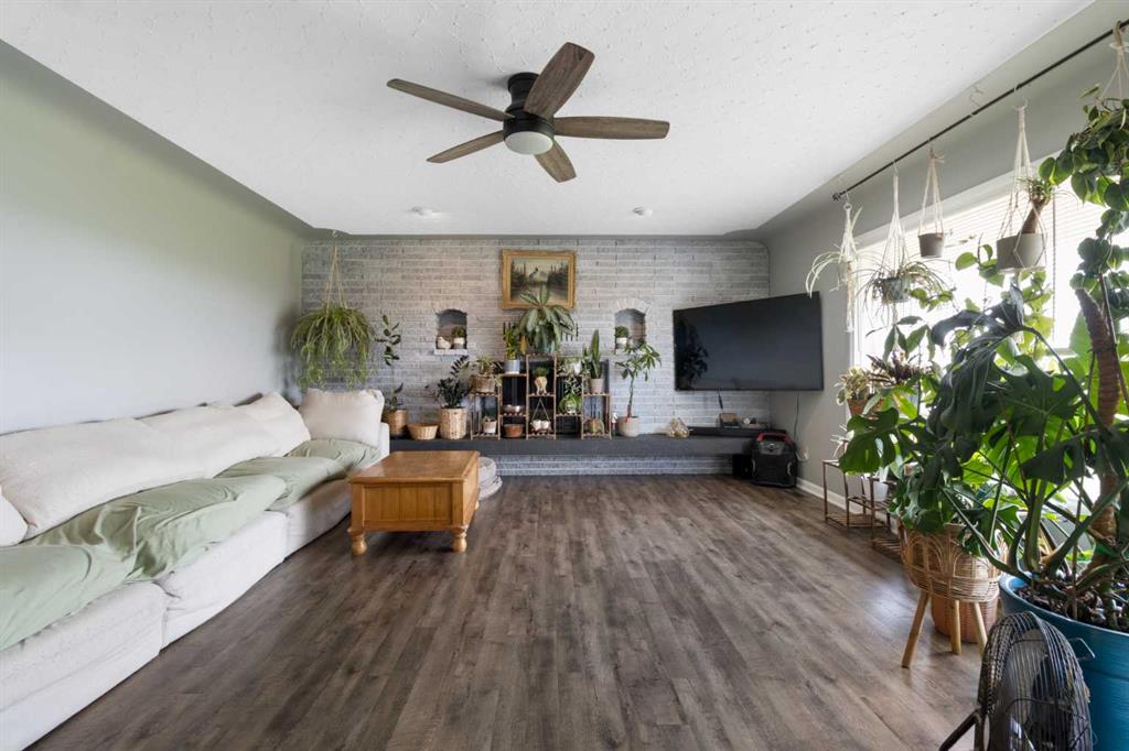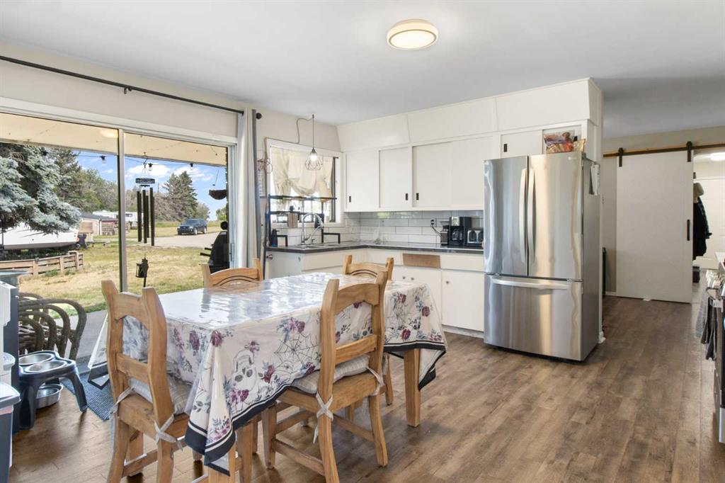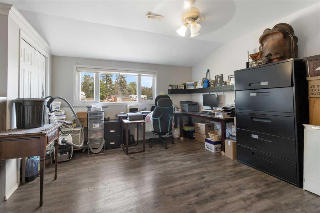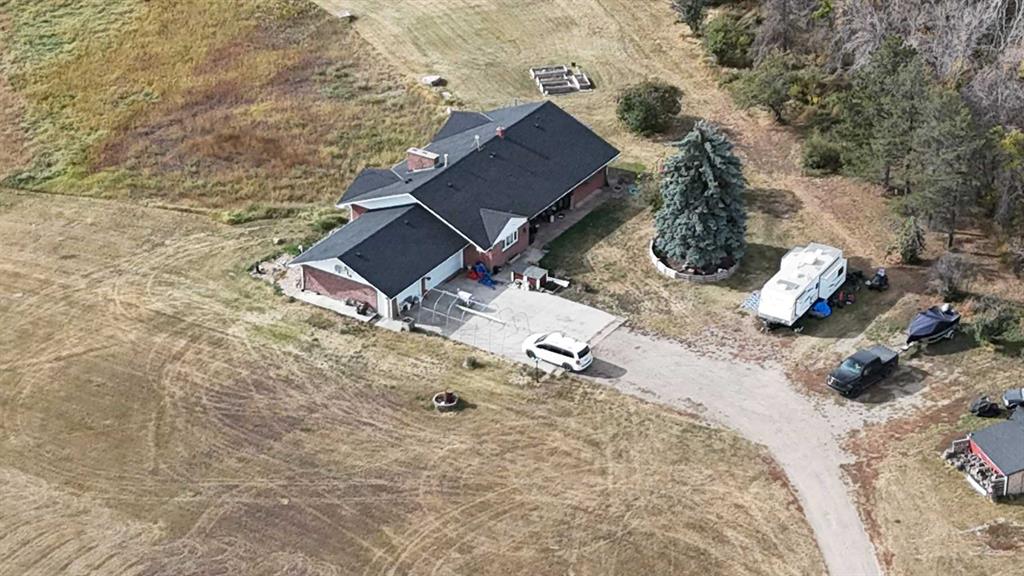 The classic brick bungalow offers nearly 2,100 square feet of main-floor living space plus approximately 1,450 square feet of developed basement, providing plenty of room for family and guests. The home features four spacious bedrooms, a bright kitchen, and a large welcoming living room. Original character details such as coved ceilings and a wood-burning fireplace bring warmth and charm to the main level, while the main-floor laundry room with utility sink adds everyday practicality. The flat acreage surrounding the home also provides excellent potential for additional buildings, a future shop, or truck and equipment storage, making the property well suited for those who want the flexibility to live and work from home. Additional highlights include a 10,000-watt wired standby generator for backup power and a recently installed new roof, offering added reliability and peace of mind. Whether you're seeking a private family acreage, hobby farm potential, or space to operate a home-based business, this rare Rocky View County property offers endless possibilities in a highly accessible location.
