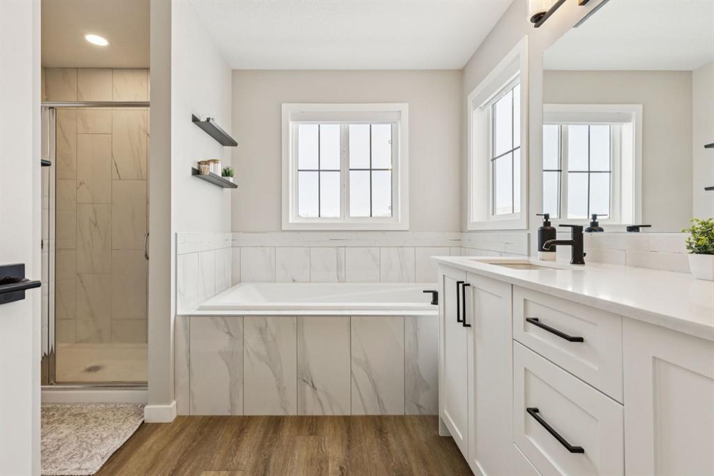 Interior:bathroom rough-in, breakfast bar, built-in features, double vanity, high ceilings, kitchen island, open floorplan, pantry, quartz counters, separate entrance, soaking tub, walk-in closet(s)