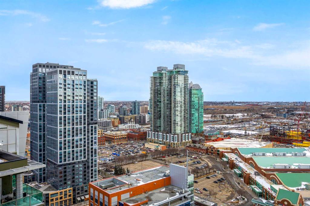 Welcome to VETRO, one of Calgary’s premier high-rise buildings in the heart of Victoria Park. This stunning 26TH-FLOOR, 2-bedroom, 2-bathroom, 9 FOOT CEILING condo offers city views and modern urban living just steps from the best of downtown. The bright OPEN CONCEPT layout features large windows that flood the space with natural light, highlighting the contemporary finishes and open living areas. The kitchen is equipped with sleek cabinetry, stainless steel appliances, under cabinet lighting, and ample counter space, flowing seamlessly into the dining and living areas—perfect for both everyday living and entertaining.