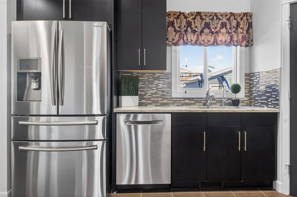 Welcome to this beautifully maintained duplex in the vibrant community of Redstone, the perfect place to call home. From the moment you step inside, you are greeted by a welcoming entryway that opens into a bright and airy open-concept main floor, where the living room, dining area, and kitchen come together seamlessly. Hardwood floors and large windows fill the space with natural light, creating a warm and inviting atmosphere ideal for both everyday living and entertaining. The heart of the home is the stylish kitchen, featuring a breakfast bar island, granite countertops, stainless steel appliances, and plenty of cabinetry for all your storage needs. Just off the kitchen is a convenient 2-piece bathroom, additional storage space, and access to the backyard. Step outside to your private back deck, the perfect spot to enjoy afternoon sunshine, summer barbecues, or a quiet morning coffee. The backyard also leads to a double detached garage, offering both convenience and extra storage. The home also features central air conditioning, keeping you cool and comfortable during warm Calgary summers. Upstairs, you’ll find a spacious primary retreat complete with a walk-in closet and a luxurious 4-piece ensuite featuring double vanities. Two additional well-sized bedrooms and another 4-piece bathroom provide plenty of space for family, guests, or a home office. The undeveloped basement is a blank canvas, ready for your personal vision, whether that’s a rec room, gym, or additional living space. The laundry area is also conveniently located in the basement. This home also offers peace of mind with several recent updates, including a new roof, new siding, some new windows, a new back door, and new downspouts and eavestroughs. Located just steps from a large park and open green space, this home is perfect for families, dog owners, or anyone who loves the outdoors. With nearby parks, pathways, shopping, and quick access to major routes, Redstone offers the perfect blend of community, convenience, and lifestyle.