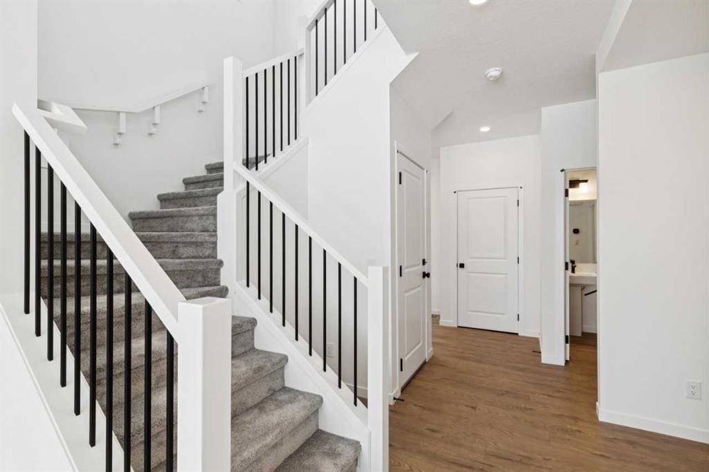 Legal basement suite! The Canyon 2 duplex by Daytona homes has all of the elements of a single family home, with duplex pricing. Complete with over 1900 sq ft of living space, and a double front attached garage, you are getting the best of both worlds size/ pricing wise. The main floor has a bright open concept, with a convenient tech space perfect for home office or study. Upstairs you'll find a central bonus room, laundry room, and 3 bedrooms including a large primary bedroom with 5 piece ensuite and walk in closet. This home also comes with a completed legal basement suite with another 493 square feet of living space or extra space for your family. A deck with stairs to grade lead you to your beautiful west facing backyard. Photos are representative.
