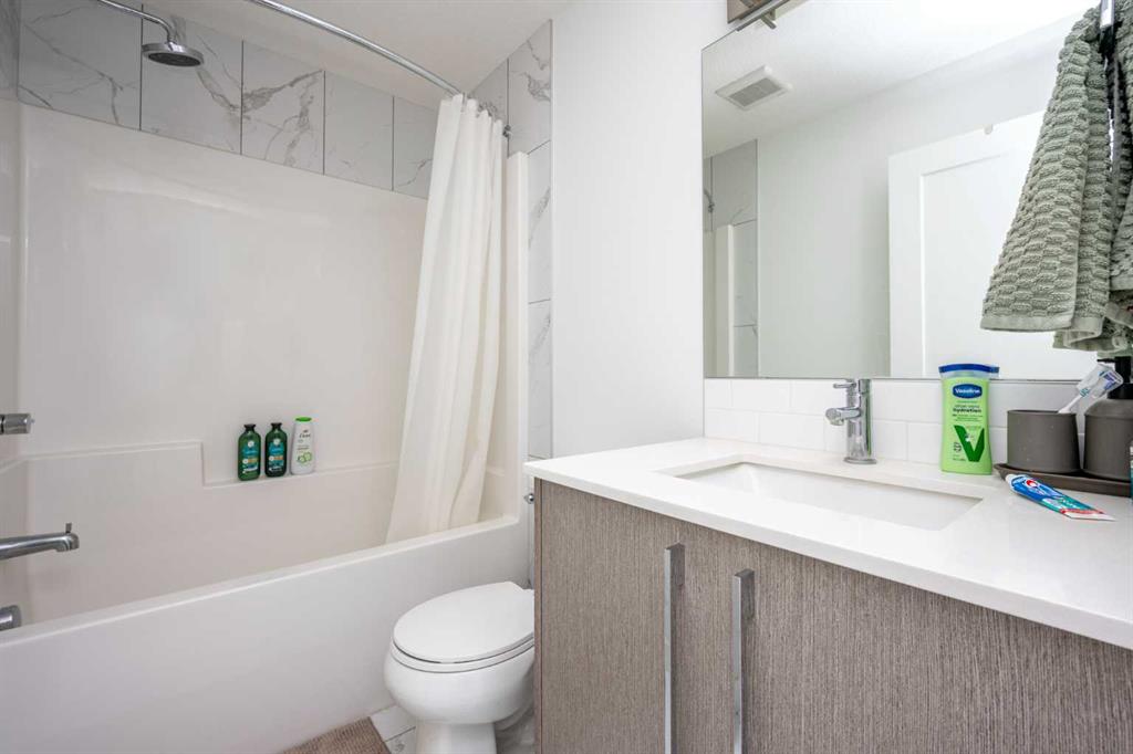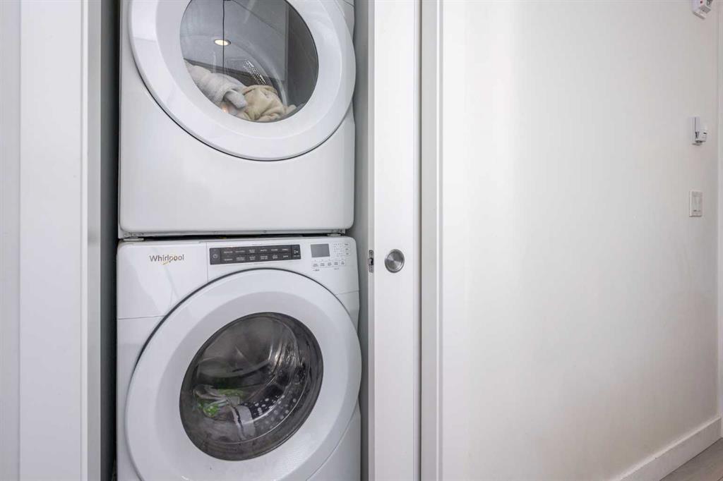 Welcome to beautiful Legends in the sought after community of Cornerstone. This 2 bed, 2 full bath unit comes with a spacious living room with large windows allowing the room to fill with natural light. The bedrooms are large, shaped appropriately and the primary bedroom has a massive 4pc ensuite bathroom. The kitchen comes with updated appliances, an ice and water dispensing fridge, built in cabinetry, and a kitchen island perfect for entertaining. This unit has in suite washer and dryer for ultimate convenience. This building is pet friendly with a dog wash station, has 2 elevators, staircase accessible, and the gym and building amenities are located in the same building. This unit has titled parking and the titled storage locker is located in a private locked room, inside the parkade away from the other dusty lockers. This unit is close to public transit, schools, walking paths, shopping, and all the amenities Calgary has to offer. Air BnB friendly building.