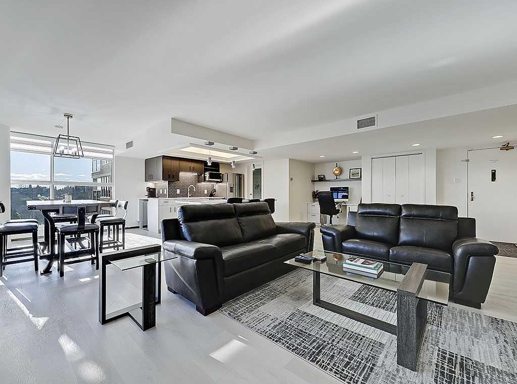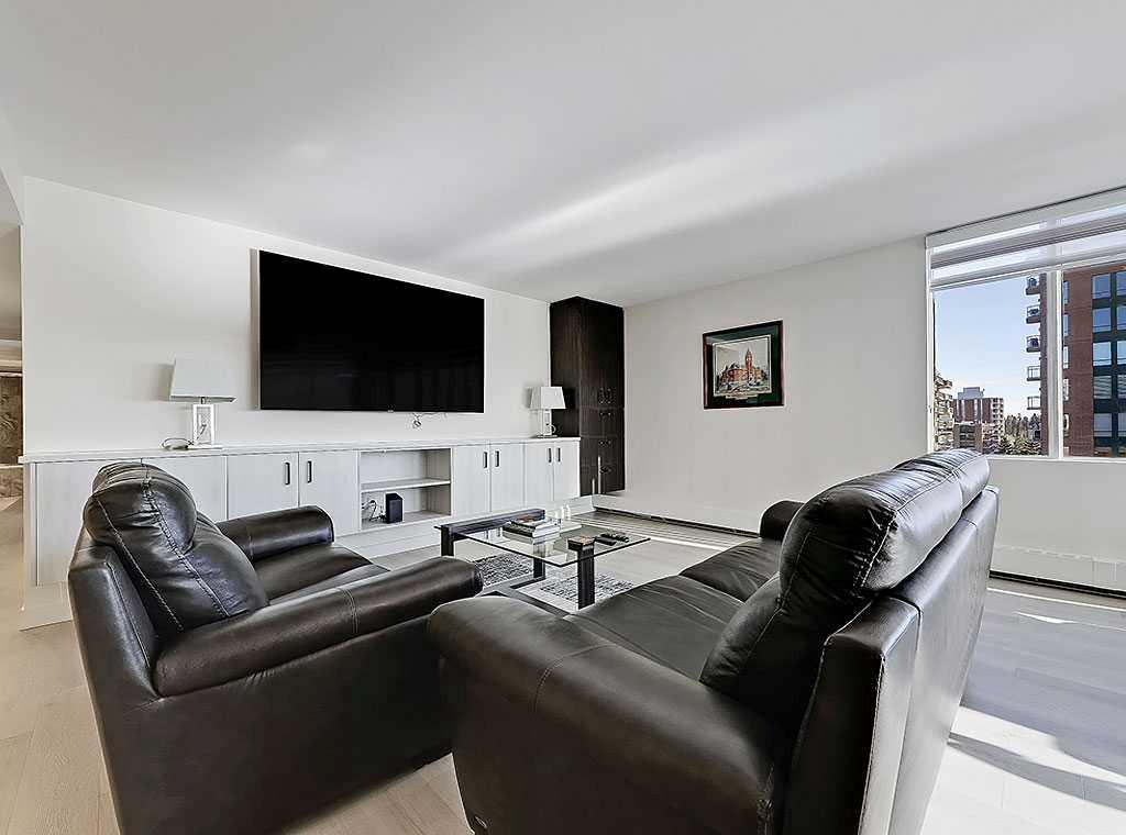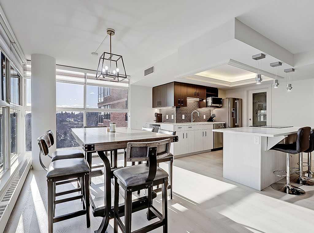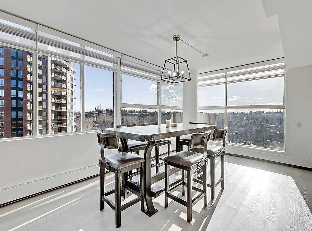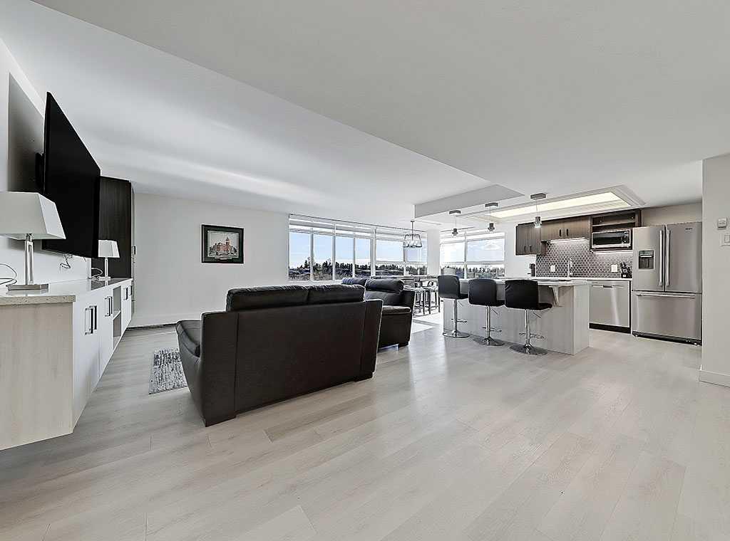 **Open House SAT March 14 from 12-3pm** Welcome to Riverstone, a prestigious, amenity rich complex in the heart of Mission, running adjacent the Elbow River & pathway system. This rare south, southeast & northeast facing end unit underwent a complete remodel in 2021, including all new kitchen, bathrooms, flooring, paint & fixtures. The unit offers nearly 1500 sq ft, 2 bedrooms, 2 bathrooms, laundry, den, huge living space and exceptional views of the Elbow River from your dining area. Enjoy the security of having the most friendly 24 hour concierge service in Calgary, security monitoring the building and parking area, indoor pool & hot tubs, fitness room, change rooms with sauna, a library, social room, tennis courts & car wash. The building is impeccably maintained with recent renovations to the pool & hot tub, all new fitness room & equipment & changerooms . Separate storage unit, titled underground parking & plenty of visitor parking. Enjoy immediate access to exquisite shops, high end dining &the prominent Glencoe Club just a few short blocks away. Opportunities like this do not come up often, so take advantage of the only unit currently for sale in the building.